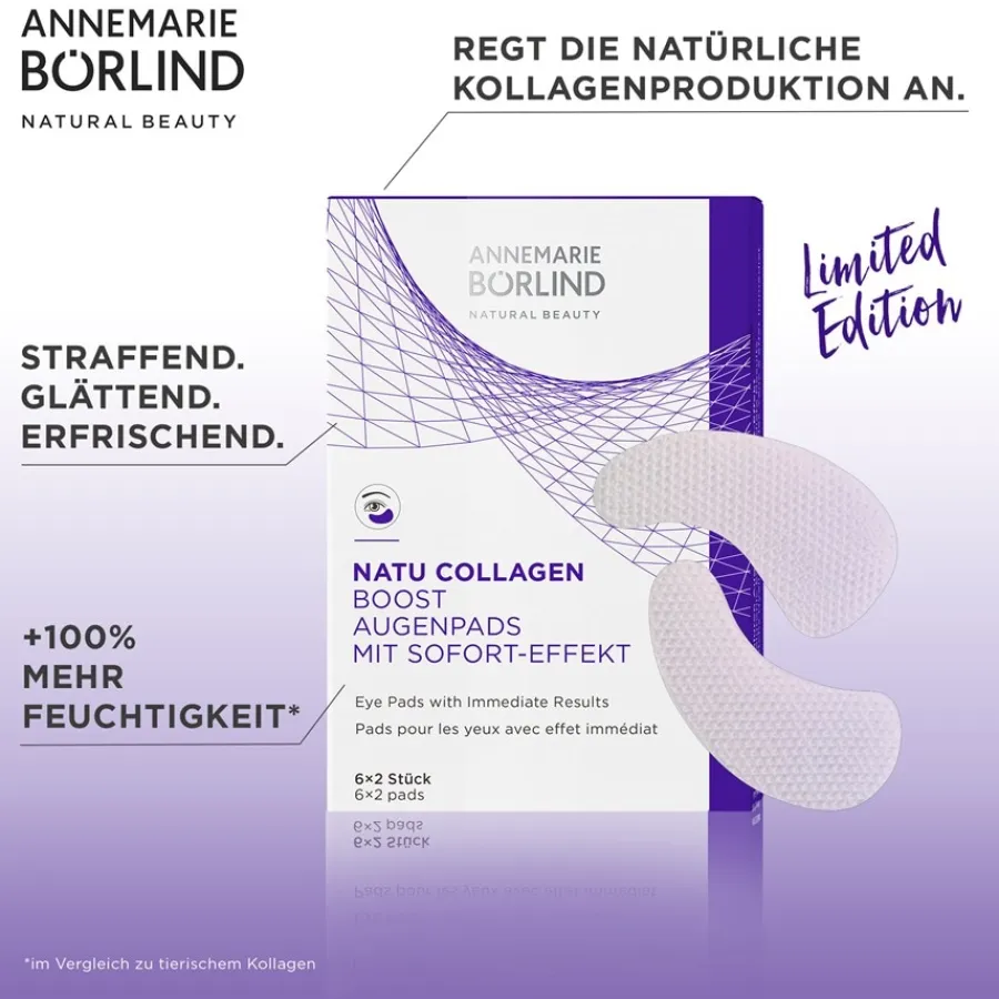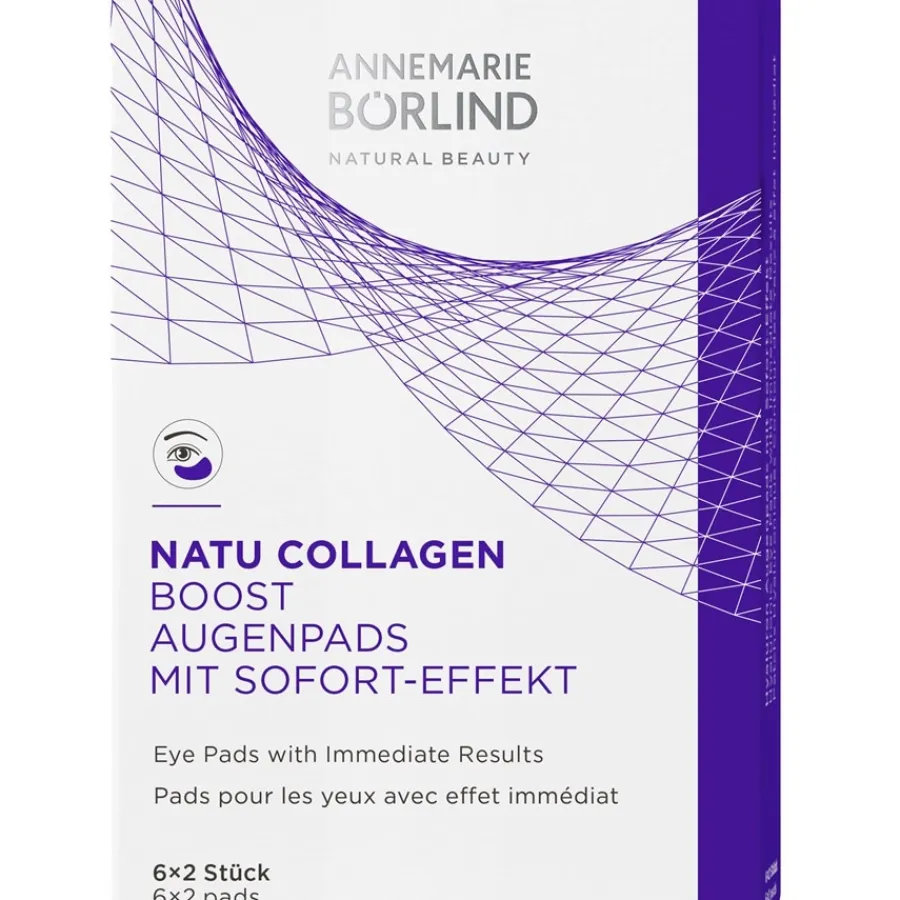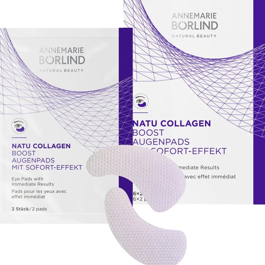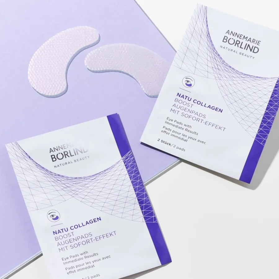 De ANNEMARIE BÖRLIND Natu Collagen Boost oogpads zijn speciaal ontwikkeld voor de gevoelige huid rond de ogen en hebben onmiddellijk effect. De formule is gebaseerd op veganistisch collageen, dat biotechnologisch wordt gewonnen uit maïs, soja en tarwe en bekend staat om zijn vochtvasthoudende eigenschappen. Een extract van de Perzische zijdeboom vult de formule aan en kan bijdragen aan een optisch liftend effect rond de ogen. Bij gebruik kunnen de pads fijne lijntjes vervagen en de oogcontour een verfriste en wakkere uitstraling geven. Het product is gemaakt in Duitsland en bevat geen parabenen, ftalaten en sulfaten.