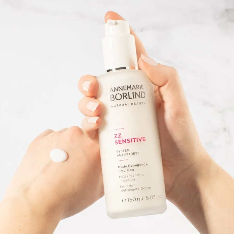 De ZZ SENSITIVE Milde Reinigingsemulsie van ANNEMARIE BÖRLIND is een milde maar grondige reiniger voor gezicht, hals en decolleté. De formule is speciaal ontwikkeld om te voldoen aan de behoeften van de gevoelige huid. Een innovatief pre- en probiotisch actief complex ondersteunt de natuurlijke flora van de huid. De samenstelling wordt aangevuld met gouden orchidee, die de pH-waarde van de huid kan reguleren. De emulsie laat de huid niet trekkerig aanvoelen na het aanbrengen en droogt de huid niet uit. Het is vrij van conserveringsmiddelen, geurstoffen en synthetische kleurstoffen, evenals derivaten van minerale oliën en siliconen. Het hygiënische dispensersysteem zorgt voor gemakkelijk en schoon verwijderen. Breng ’s ochtends en ’s avonds aan op een droge huid en verwijder de emulsie met warm water.