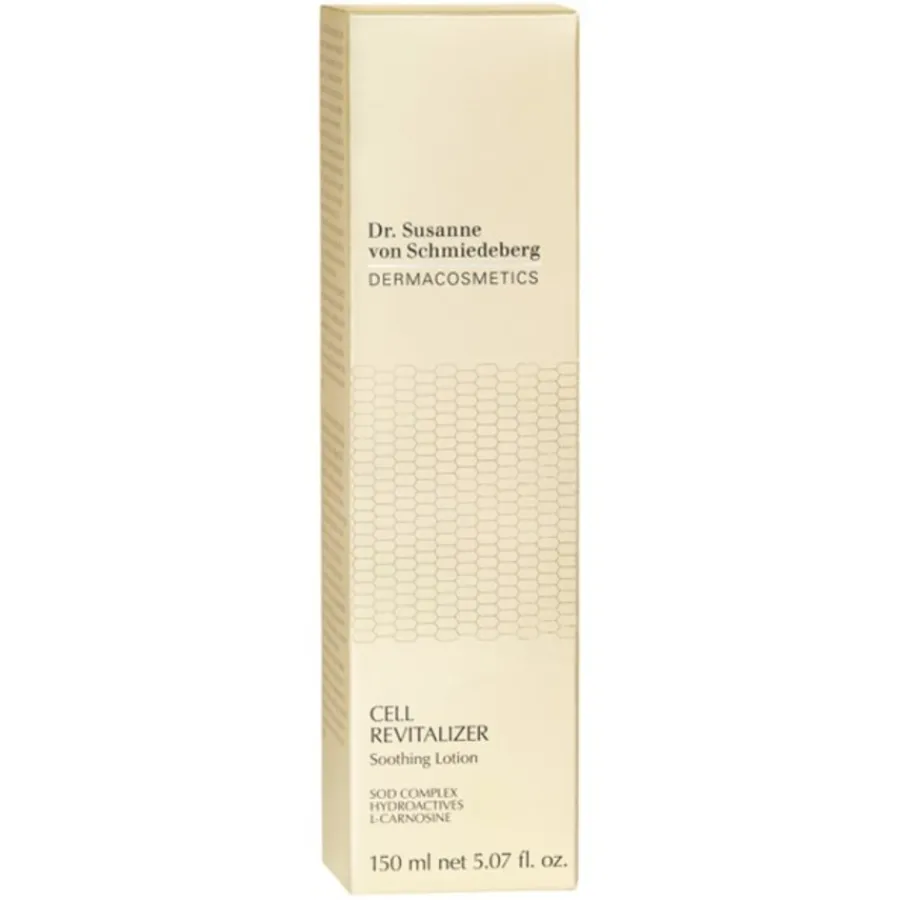 De Cell Revitaliser Soothing Lotion van Dr Susanne von Schmiedeberg is een gezichtslotion die de huid voorbereidt op de volgende huidverzorgingsstappen. De formule bevat L-carnosine, een ingrediënt dat het uiterlijk van de huid kan beïnvloeden. Het SOD-complex (superoxide dismutase) dat het bevat, heeft antioxiderende eigenschappen en kan de huid beschermen tegen invloeden van buitenaf. De lotion is ook verrijkt met panthenol, dat bekend staat om zijn verzachtende eigenschappen. Hydraterende actieve ingrediënten ronden de samenstelling af en kunnen droogtelijntjes verzachten. De lichte textuur wordt snel opgenomen en laat een aangenaam gevoel achter op de huid. Het product is geschikt voor alle huidtypen en is een ideaal onderdeel van de dagelijkse huidverzorgingsroutine.</p