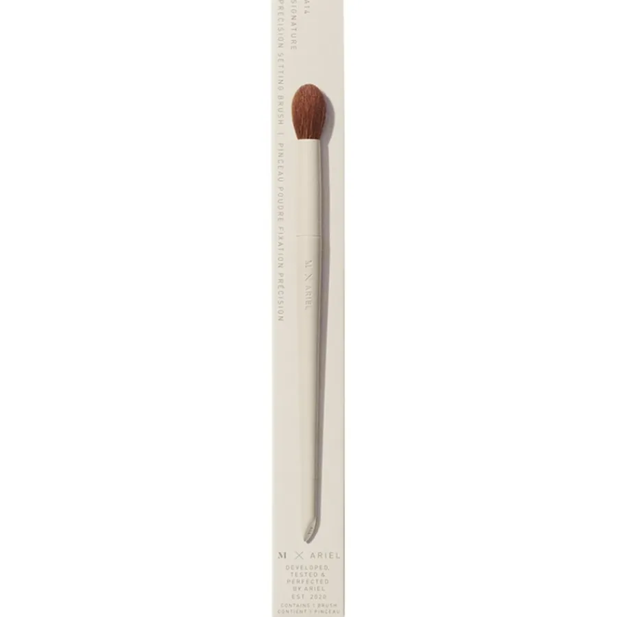 Hoe gebruik je de Morphe A14 Signature Precision Setting Brush M X ARIEL?Druk de gezichtskwast in de setting powder en breng het aan onder de ogen met de zijkant van de kwast. Overtollig product kan snel worden verwijderd met het taps toelopende uiteinde. Het taps toelopende uiteinde van de Setting Brush is ideaal om highlighter precies aan te brengen op de neusbrug en de cupidoboog.