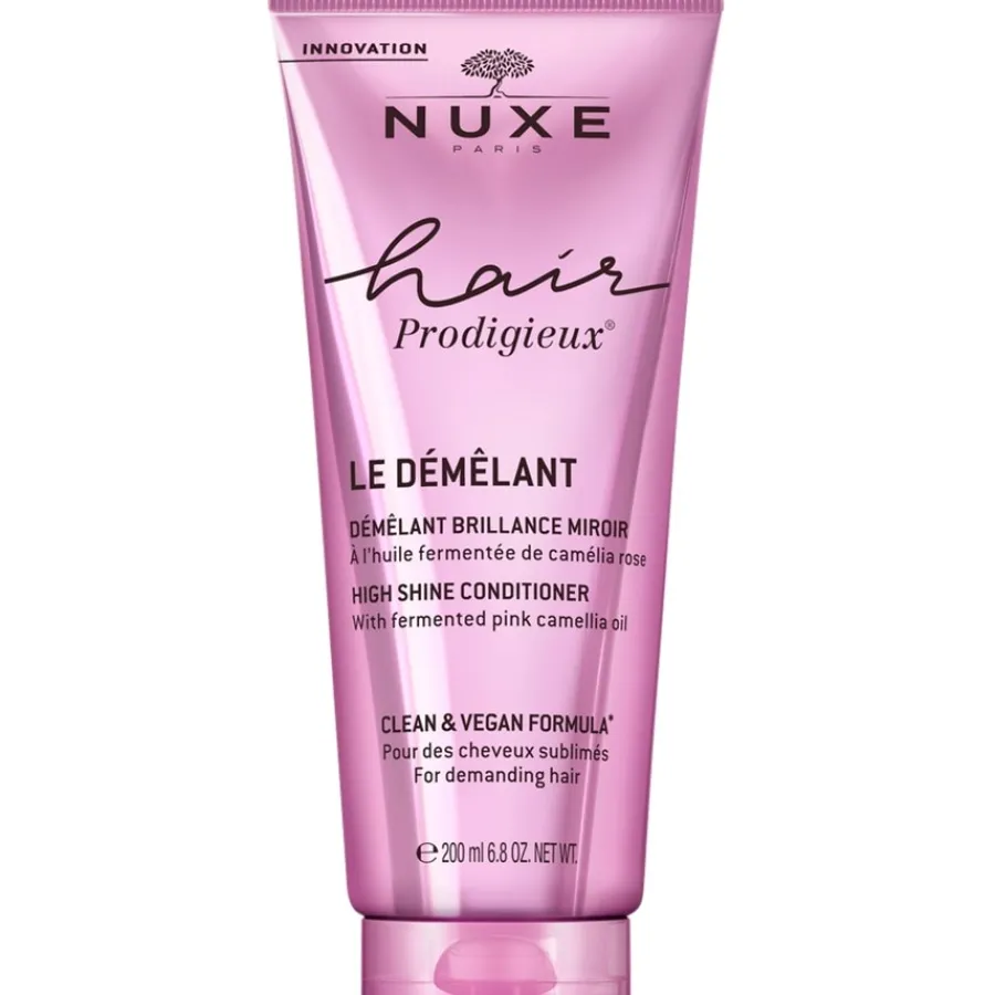 De Nuxe Hair Prodigieux Shine Conditioner is volledig zonder siliconen geformuleerd en is geschikt voor alle haartypes, -kleuren en -lengtes. In de eigen test van de fabrikant bevestigden de proefpersonen dat hun haarstructuur verbeterde na het eerste gebruik van Nuxe Hair Prodigieux Shine Conditioner. Negen van de tien gebruikers vonden dat hun haar makkelijker doorkambaar was, aangenaam gehydrateerd aanvoelde en ook een mooie zijdeachtige glans had. De haarverzorging maakt ook een flexibelere styling mogelijk, omdat het haar zachter en handelbaarder wordt. De vitaminen van de camelia geven het haar ook een natuurlijk beschermend schild tegen milieuvervuiling en andere irriterende stoffen in de lucht.