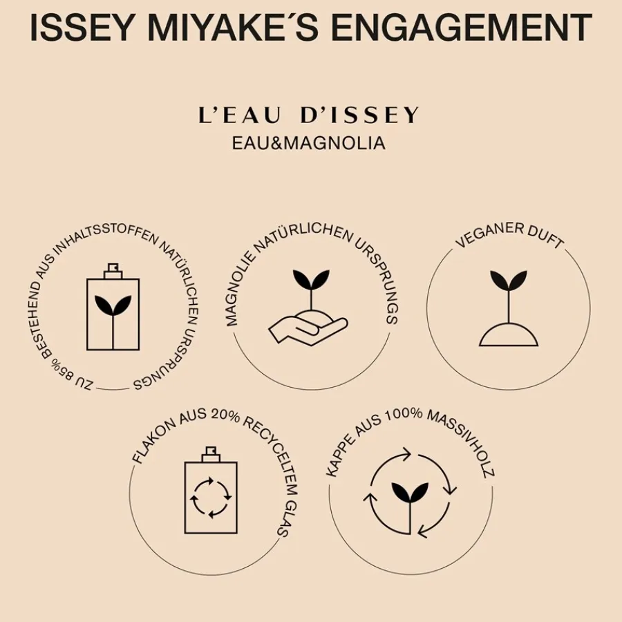 L’Eau d’Issey Eau & Magnolia van Issey Miyake is een compositie die de zuiverheid van water combineert met de stralende aanwezigheid van magnolia. De geur opent met de sprankelende frisheid van bergamot en neroli. In het hart van de creatie ontvouwt zich een zonnig boeket van de gelijknamige magnoliabloesem, vergezeld door delicate roos en heldere, aquatische noten. Deze bloemige hartnoot geeft de Eau de Toilette Intense zijn heldere karakter. De geurbeleving wordt afgerond door een basis van romig sandelhout en een vleugje muskus, die zorgen voor een subtiele diepte. Het parfum wordt gepresenteerd in een minimalistische glazen flacon van 20% gerecycled glas en is afgewerkt met een dop van natuurlijk essenhout, wat het natuurlijke karakter van de geur benadrukt.