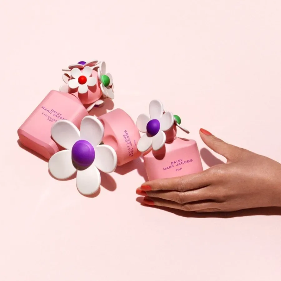 Daisy legde de basis voor het succes van deze betoverende collectie van Marc Jacobs. Deze frisse en jeugdige klassieker met zijn onmiskenbare geur werd het favoriete parfum voor veel vrouwen die houden van frisse bloemengeuren. De limited edition Daisy Eau So Fresh Pop volgt deze traditie. De dop van de flacon is kenmerkend voor de Eau So Fresh creaties. De ontwerpers hebben het bedekt met grote, kleurrijke bloemen.De topnoot van de eau de toilette spray is fris, fruitig en verkwikkend. Scherpe limoen en citroen vermengen zich met een zoete perensmaak. De fruitige smaak zet zich voort in de hartnoot. Maar hier komen zomerbloemen bij: het onmiskenbare aroma van rijpe frambozen ontmoet de bloemige geur van roos en viooltjes. Een heerlijk slotakkoord van muskus, cederhout en kristalmos vormt de basis.