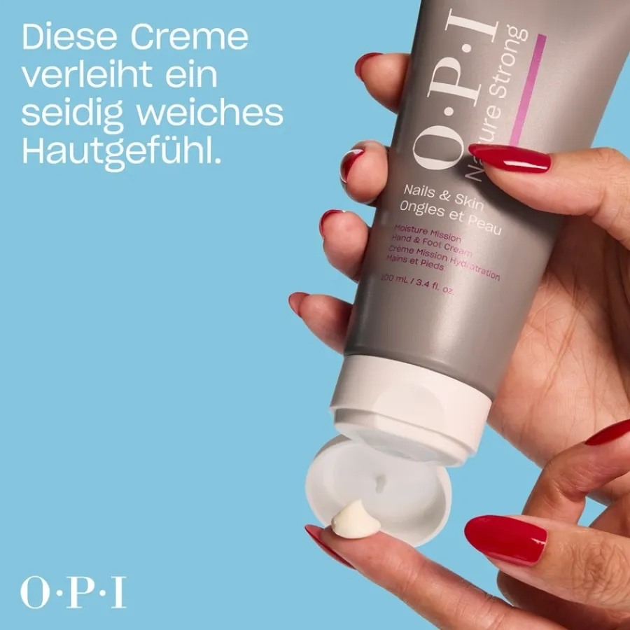Moisture Mission Hand & Foot Cream van OPI is een voedende crème voor handen, voeten en nagels. OPI is een merk van Wella en beschrijft zichzelf als de “wereldmarktleider in professionele nagelverzorging”. Dankzij het innovatieve productassortiment is het merk erg populair bij professionele en particuliere gebruikers. Het portfolio omvat hand- en voetverzorgingsproducten, nagelbehandelingen, afwerkingsproducten, lotions en acrylproducten.