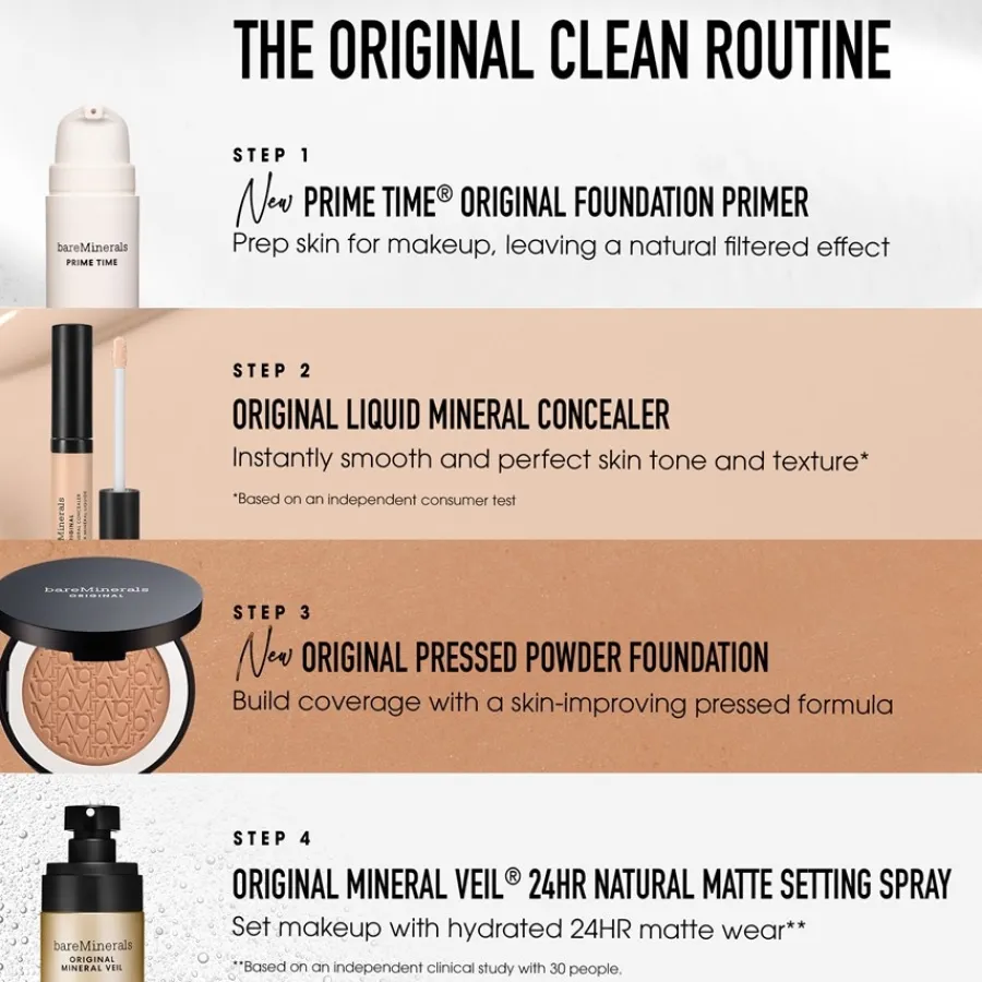 De bareMinerals Original Pressed Powder Foundation is de geperste versie van de populaire losse poeder en combineert een opbouwbare dekking met een natuurlijk stralende finish. De zijdezachte, lichtgewicht textuur glijdt soepel over de huid voor een egale uitstraling zonder in lijntjes te trekken of poriën te verstoppen. De talkvrije formule is veganistisch en is ontwikkeld zonder parabenen, siliconen of geurstoffen. Afhankelijk van de applicatie kan een subtiele tot volledige dekking worden bereikt en kan het poeder roodheid minimaliseren. Een geïntegreerde minerale zonnebeschermingsfactor 15 biedt bescherming tegen UVA- en UVB-stralen. Het dermatologisch geteste product is ontworpen om lang te dragen en is bestand tegen zweet en vocht.