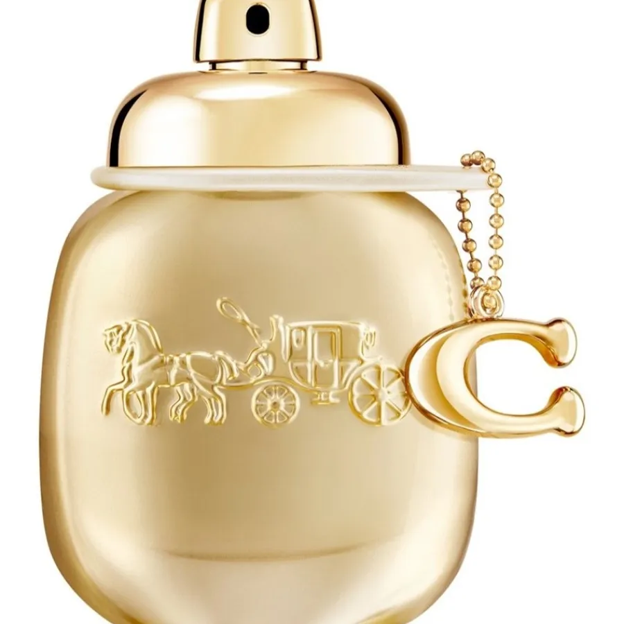 Coach Women Parfum Gold is een compositie die wordt gepresenteerd in een elegante, goudkleurige flacon. Het ontwerp wordt gekenmerkt door een gladde, ronde vorm en een glanzend oppervlak dat een luxueuze indruk maakt. Een bijzonder detail is het fijne reliëf van een paardenkoets op de voorkant, dat de flacon een bijzondere tactiele en visuele verfijning geeft. Een gouden hanger met de kenmerkende “C” van het merk rondt de exclusieve uitstraling af.</p