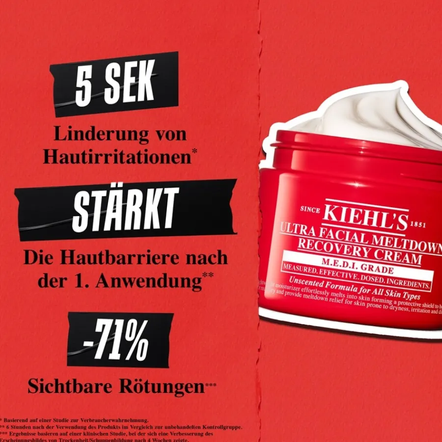 Kiehl’s Ultra Facial Meltdown Recovery Cream is een dermatologisch geteste, medische moisturizer die de geïrriteerde huid kalmeert en de regeneratie van de natuurlijke beschermingsbarrière van de huid bevordert.