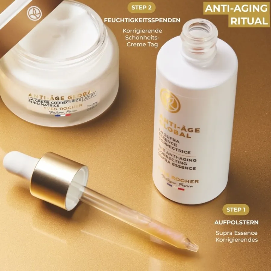 De crème wordt elke ochtend na het corrigerende serum op het hele gezicht aangebracht