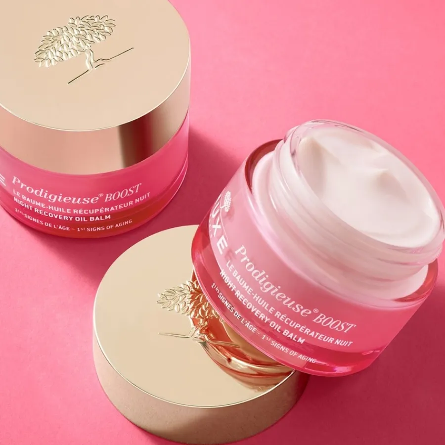 Nuxe Crème Prodigieuse bevat extracten van jasmijnbloesem. Met zijn antioxiderende werking verdrijft het eenvoudig de effecten van vermoeidheid en stress. Een speciale cocooning textuur wordt gebruikt in combinatie met kostbare macadamia olie. Een delicate sluier bedekt de huid in een beschermende laag, terwijl calendula en cactusbloemextract de celstructuur kalmeren. Een heerlijke anti-aging gezichtsverzorging voor vrouwen met hoge eisen. Crème Prodigieuse is het antwoord op natuurlijke verzorging. Boost Soothing Oil Balm voor de nacht verwent je met fijne geuren van groene jasmijn, wit hout en roze lychee.