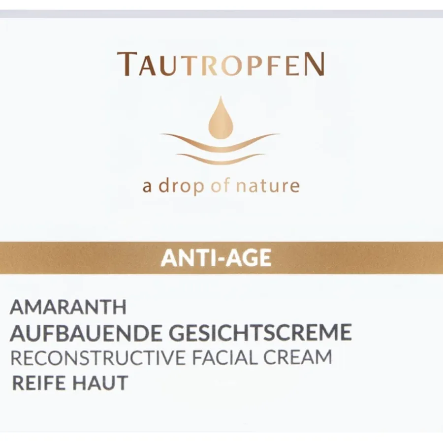 Regenererende verzorging voor een harmonieuze teint De Amaranth Anti-Age Solutions Herstellende Gezichtscrème van TAUTROPFEN is een rijke dag- en nachtcrème voor de rijpere huid. Hij bevat amarant, de oudste gekweekte plant ter wereld, waardoor je huid er aanzienlijk vitaler en voelbaar gladder uitziet. De anti-aging verzorging is ook verrijkt met hoogwaardige huidverzorgende ingrediënten zoals macadamianootolie, lederhoning en kakadu pruim, die de huid intensief hydrateren. De gezichtsverzorging heeft echter niet alleen een hydraterende werking, maar heeft ook regenererende eigenschappen en geeft je een harmonieuze en gerevitaliseerde uitstraling met minder rimpels – dag na dag.Amaranth Anti-Age Solutions gezichtsverzorging wordt ’s avonds na het reinigen en tonifiëren van de huid aangebracht op gezicht, hals en decolleté en zachtjes ingemasseerd. De crème is ook ideaal als dagverzorging, vooral tijdens het koude seizoen. Regelmatig gebruik van de gezichtscrème is een voorwaarde voor een optimaal anti-aging effect. Je kunt de resultaten intensiveren door de crème te combineren met andere producten uit het TAUTROPFEN Amaranth assortiment.