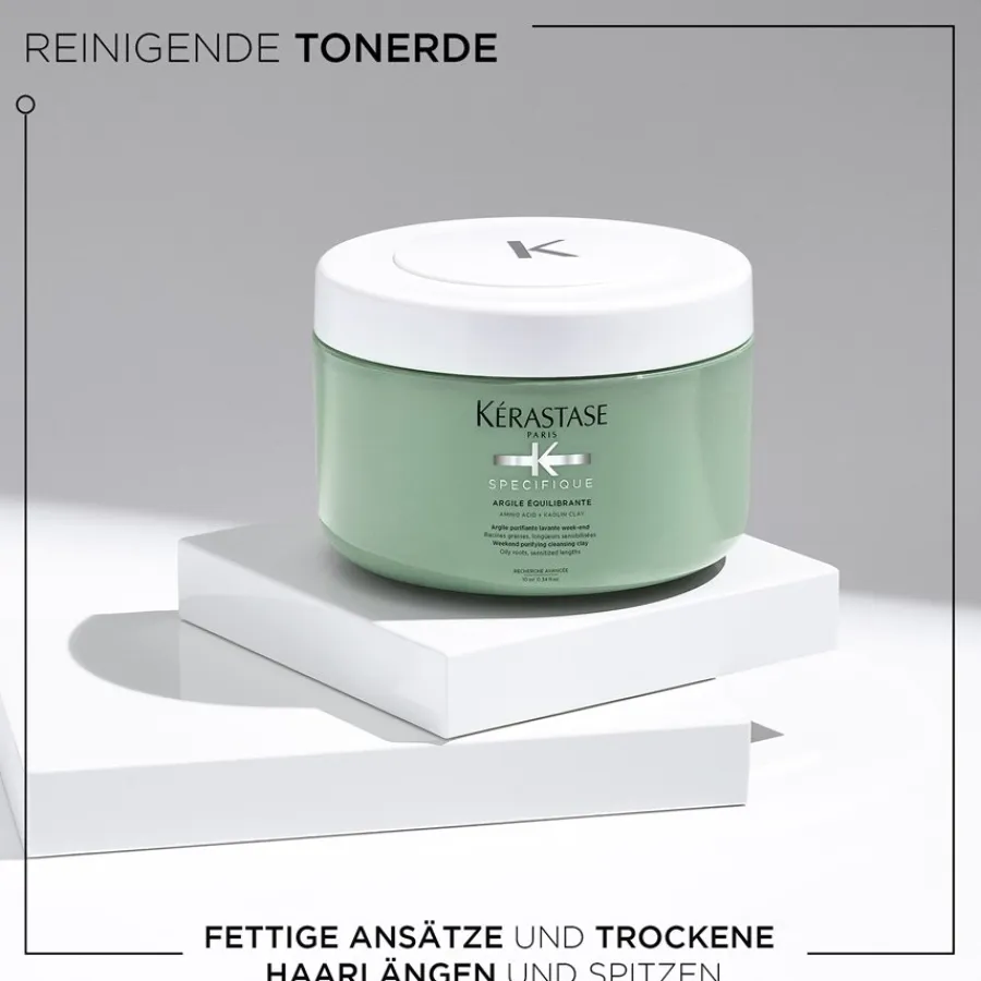 Spécifique Argile Èquilibrante van Kérastase reinigt het haar en de hoofdhuid intensief en verwijdert vuil en onzuiverheden. Het masker brengt de talgproductie weer in balans en geeft de haarlijn meer volume. Het heeft herstellende en ontgiftende eigenschappen. Breng het kleimasker aan op de natte haarwortels en hoofdhuid en laat het schuimen. Masseer het schuim in de lengten en punten en spoel het product vervolgens grondig uit. Gebruik het haarverzorgingsproduct eenmaal per week en geniet van zijdezacht, vol haar en een gezonde, verzorgde hoofdhuid!