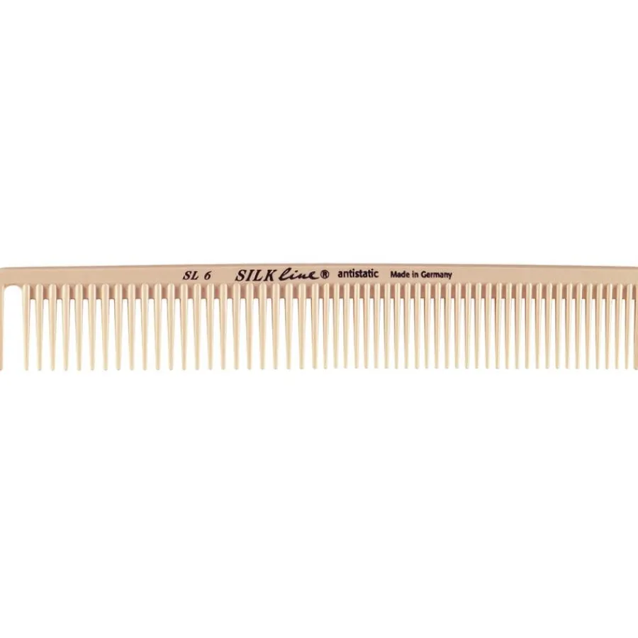De SL6 knipkam maakt deel uit van de Silk-Line van het label en wordt gekenmerkt door zijn fijne vorm en professionele afwerking. De fijne tanden van het model zijn zacht afgerond aan de punt. Dit biedt speciale bescherming voor haar en hoofdhuid. De rechte bovenrand maakt efficiënt en flexibel werken mogelijk. De antistatische kam voorkomt dat het haar elektrisch geladen raakt tijdens het knippen. De kam is geschikt voor alle kapsels.Het Hercules Sägemann label is van New-York Hamburger Gummi-Waaren Compagnie AG, een traditioneel bedrijf dat al meer dan 150 jaar kappersproducten zoals haarborstels en kammen maakt. De knipkammen en andere producten worden nog steeds met de hand gemaakt. U kunt het SL6 model en vele andere haarborstels & kammen van het Hercules Saegemann label hier in de Parfumdreams shop verkrijgen.