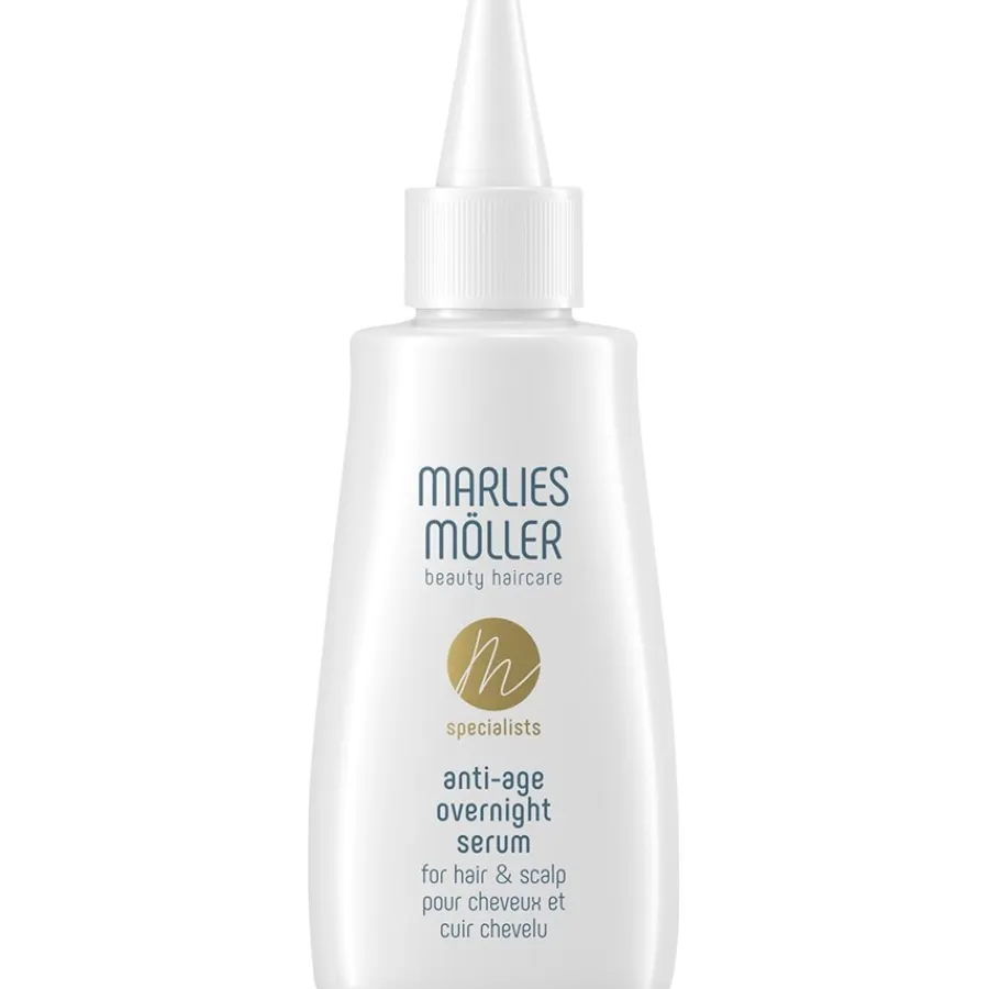Het Specialists Anti-Age Overnight Serum van Marlies Möller hydrateert, revitaliseert en versterkt haar en hoofdhuid. Het herstelt de haarstructuur en kalmeert de hoofdhuid. Van wortel tot punt verwent het het haar met kalmerende verzorging. De formule is geschikt voor alle haartypes. Breng het serum elke avond scheidend aan op de hoofdhuid en masseer het zachtjes in. Kneed de textuur vervolgens in de lengten en punten van je haar. Verheug je op zijdezacht, glanzend haar en een verfriste hoofdhuid in de ochtend!