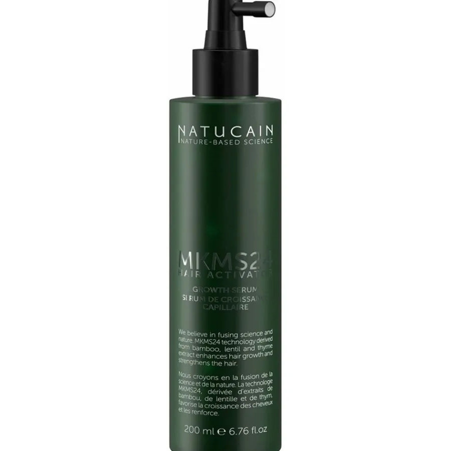 Natucain Hair Growth Serum is geschikt voor mannen en vrouwen die last hebben van dunner wordend, dunner wordend haar. Het helpt bij hormonaal en erfelijk haarverlies evenals menopauzaal en circulair haarverlies. Het serum is vegan, parabeen- en sulfaatvrij en bevat geen siliconen. Dankzij de hormoonvrije formule is het vrij van bijwerkingen zoals een jeukende of branderige hoofdhuid, roodheid of hoofdpijn. Bij regelmatig gebruik zijn de eerste resultaten al na 8 tot 12 weken zichtbaar.