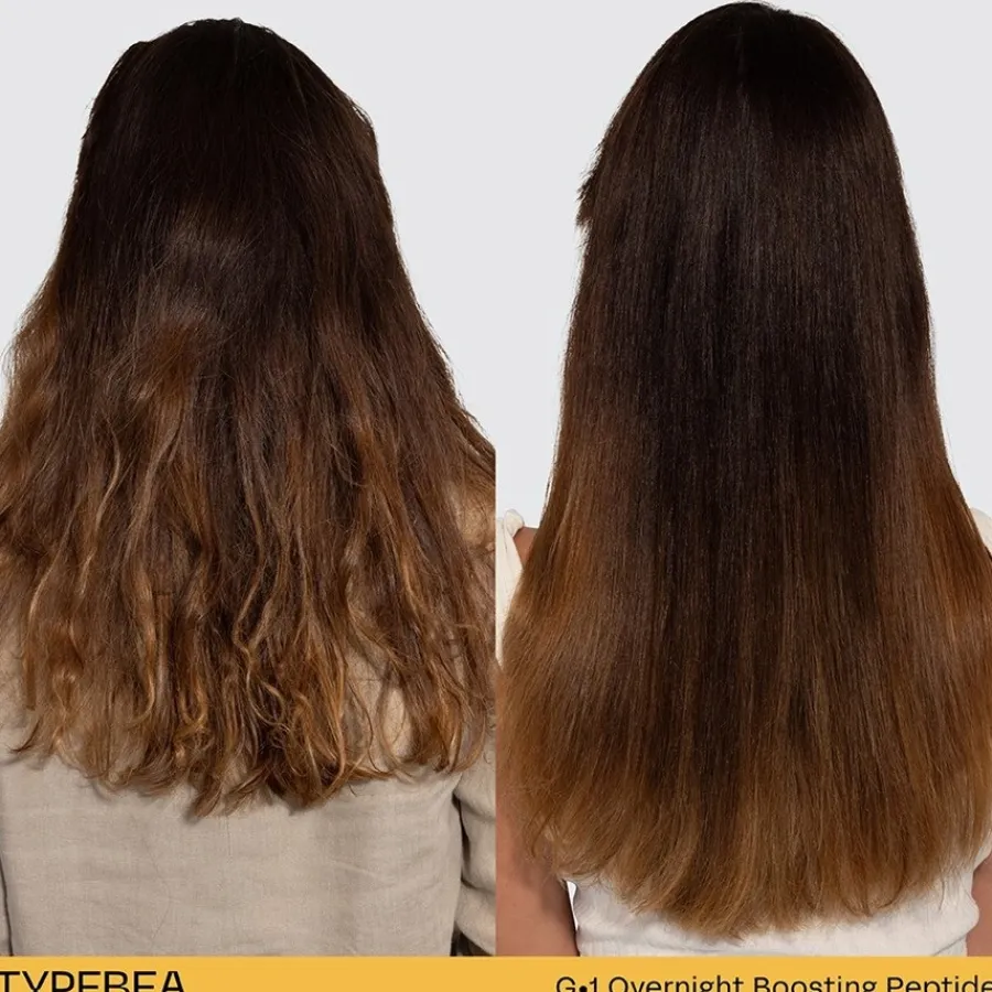 Het G1 Overnight Boosting Peptide Serum van TYPEBEA is een lichtgewicht hoofdhuidbehandeling voor ’s nachts. De niet-vette formule wordt snel geabsorbeerd zonder resten achter te laten, waardoor het een ongecompliceerde toevoeging is aan je avondroutine. Geformuleerd met Baicapil™, een combinatie van soja- en tarwekiemen en Scutellaria baicalensis, kan het de verschijning van dikker en voller haar ondersteunen. Het dermatologisch geteste serum is geschikt voor alle haartypes, inclusief gekleurd, fijn of dunner wordend haar. De veganistische formule is ook vrij van sulfaten en parabenen en wordt eenvoudig op de hoofdhuid aangebracht en ingemasseerd zonder te spoelen.