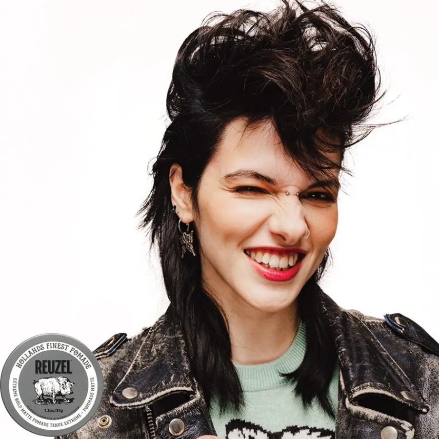 De Extreme Hold Matte Pomade van Reuzel is ontwikkeld voor veeleisende kapsels die een bijzonder sterke maar flexibele fixatie nodig hebben. Met zijn formule op waterbasis biedt het de sterkste hold in het Reuzel-assortiment, maar kun je het de hele dag door gemakkelijk restylen. De pommade geeft het haar een volledig matte finish voor een natuurlijke look zonder glans. Het kan het haar zichtbare textuur en volume geven, waardoor het ideaal is voor gedefinieerde of opzettelijk rommelige kapsels. Ondanks de sterke fixatie is het product gemakkelijk uit te wassen aan het einde van de dag zonder restjes achter te laten. Een subtiele, zoete rumgeur begeleidt de stylingervaring. De pommade is ontwikkeld door de kappers van het merk Schorem uit Rotterdam en is geschikt voor alle haartypes, vooral voor middeldik tot dik haar.