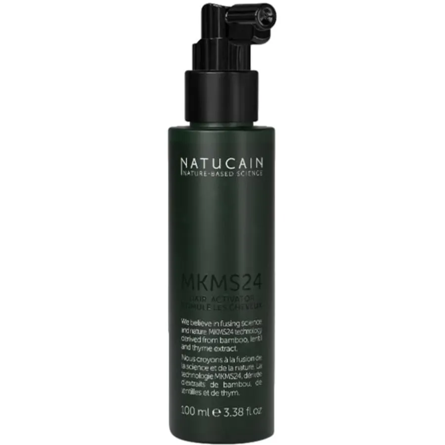 Natucain combineert wetenschap en natuurlijke ingrediënten: de Hair Activator MKMS24 voor het haar pakt haar- en hoofdhuidproblemen aan met een wetenschappelijk ontwikkeld complex van actieve ingrediënten gemaakt van bamboe, linzen en tijm. Het product, gemaakt in Duitsland, versterkt je haar en zorgt voor meer groei en regeneratie. Hair Activator MKMS24 is effectief tegen haaruitval: er wordt gezegd dat de formule haaruitval tot 90% vermindert.