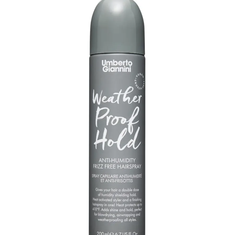 De Wheatherproof Hold Frizz Free Hairspray van Umberto Giannini zorgt voor een ultralichte, medium hold en kroesvrij haar. Het is perfect voor een vlekkeloze hairstyling onder alle weersomstandigheden. De Frizz-Fix technologie combineert hittebescherming tot 210 °C met vitamine E voor gladde glans en makkelijk kammen. De veelzijdige formule absorbeert onmiddellijk zonder residu of plakkerigheid achter te laten. Het temt op betrouwbare wijze springerig en pluizig haar. De haarlak wordt gebruikt voor de krultang of stijltang, beschermt tegen hitte en houdt stijlen de hele dag in model. De fijne textuur zorgt voor een vederlichte hold zonder plakkerig laagje en betrouwbare bescherming tegen hoge luchtvochtigheid.