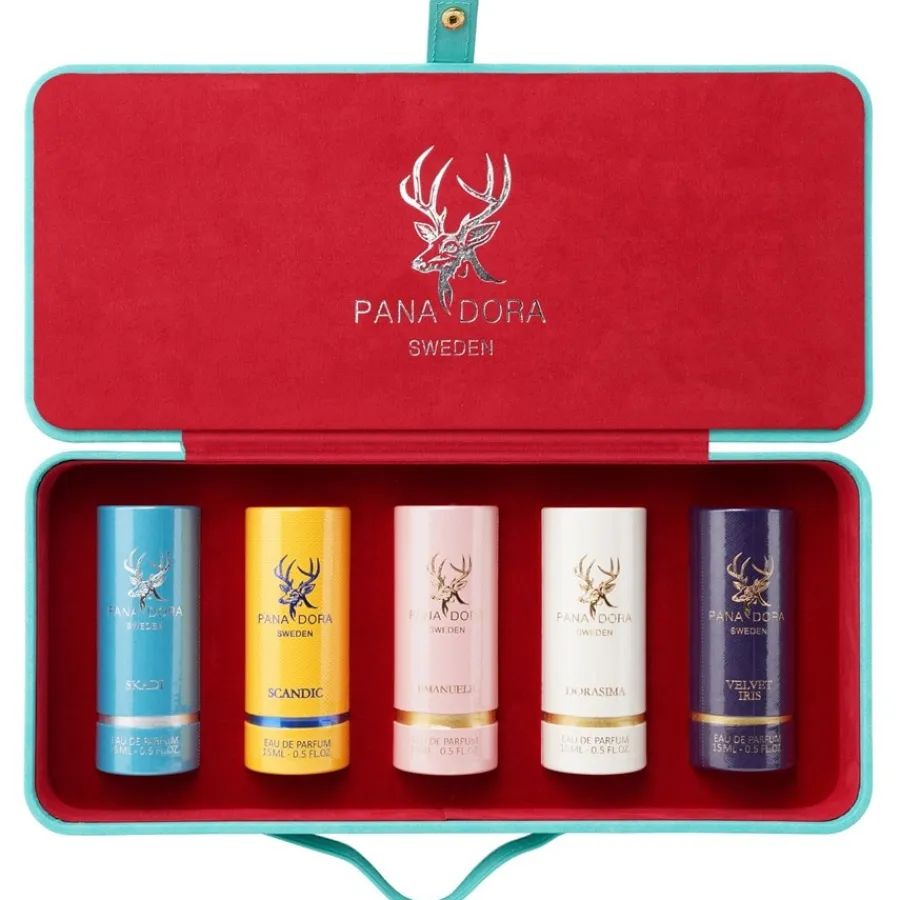 Scandic:Alcohol denat., Parfum, Aqua, Citrus Aurantium Bergamia Peel Oil, Jasminum, Officinale Oil, Lavandula angustifolia Oil, Rose Flower oil, Limonene, Pogostemon Cablin Oil, Pelargonium Graveolens Flower Oil, Rose Ketones, Alpha-isomethyl Ionone, Alphaterpinene, Benzyl Alcohol, Benzyl Salicylate, Trimethylbenzenepropanol, Eugenol, Geraniol, Geranyl Acetate, Hydroxycitronellal, Vanillin, Beta-Caryophyllene, Citronellol, Linalool, Linalyl acetate, Pinene, Tetramethyl Acetyloctahydronaphthalenes.