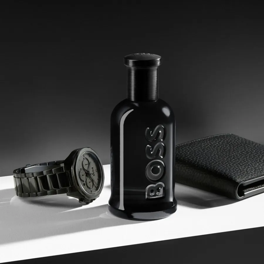 De flacon van BOSS Bottled, geschilderd in rokerig zwart en voorzien van een matzwarte dop, is een onmiskenbaar symbool. De matzwarte buitenverpakking en het ijsgouden merk benadrukken de krachtige en gedurfde essentie van deze geur voor mannen die leven als een BOSS.