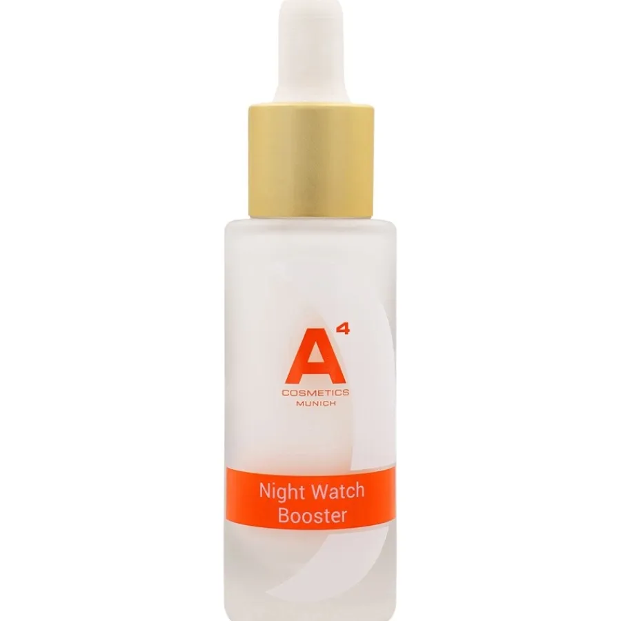 De Night Watch Booster combineert uitzonderlijke actieve ingrediënten om het natuurlijke herstelmechanisme van de huid te ondersteunen. Het nachtserum revitaliseert de huid uitgebreid. Waardevolle plantaardige ingrediënten zoals rozenwater en arganolie, de kern van A4 Cosmetics, dringen diep door in de huid en voorzien deze van essentiële vetzuren. De celstofwisseling wordt specifiek gestimuleerd, waardoor het huidverouderingsproces wordt vertraagd. De antiverouderingsformule hydrateert de huid optimaal en versterkt de natuurlijke beschermingsfunctie. Plantaardige stoffen uit soja stimuleren de collageenproductie en zorgen in combinatie met hyaluronzuur en panthenol voor een stevigere, jeugdigere teint.Deze hoogwaardige nachtverzorging gaat de tekenen des tijds tegen terwijl je slaapt. Huidbeschadiging door overmatige UV-straling en imperfecties worden afgevlakt en de huid wordt steeds minder gevoelig voor negatieve invloeden van buitenaf. Een gezichtsverzorgingsproduct voor iedereen die er ’s ochtends verkwikt en fris uit wil zien.De Night Watch Booster van A4 Cosmetics is een nachtverzorgingsproduct geschikt voor alle huidtypes.