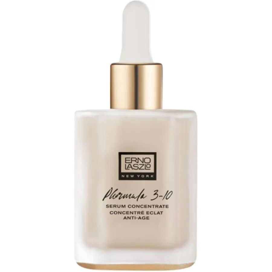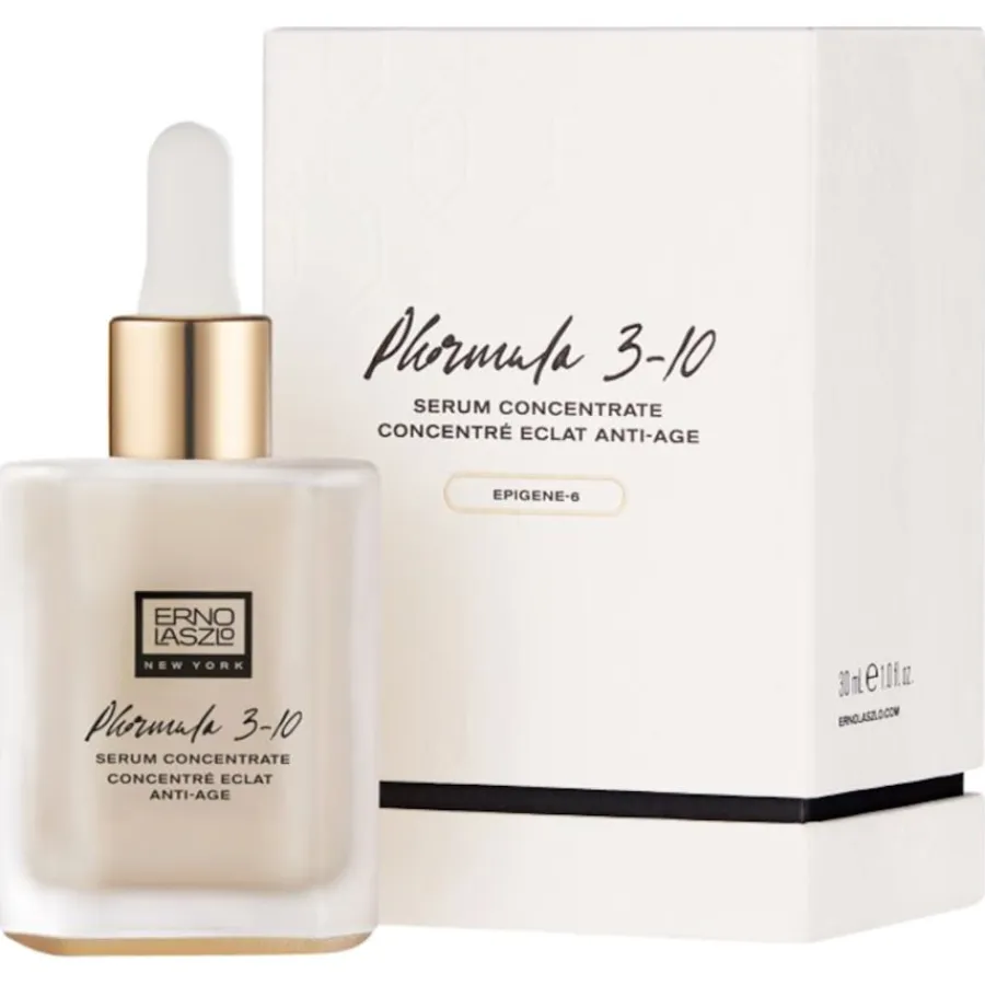 Het Phormula 3-10 Serumconcentraat uit de gezichtsverzorgingslijn van Erno Laszlo is ontwikkeld voor de rijpere huid die al de eerste tekenen van veroudering vertoont. Het huidverzorgingsconcentraat bevat een krachtige combinatie van antioxidanten, mineralen en vitaminen gewonnen uit appels en gember. Ze stimuleren de celvernieuwing en voeden de huid, waardoor deze elastischer en steviger wordt en de gezichtscontouren strakker worden.Het Phormula 3-10 Serumconcentraat bevat Palmitoyl Tripeptide-5, dat poriën verfijnt, kleurverschillen in de huidteint egaliseert en de algehele textuur van de teint verbetert. Een marien aqua-gelcomplex en extracten van lotusbloesem en Japanse roos hebben een intensief hydraterend effect, ontspannen de huid en verminderen fijne lijntjes en rimpels.We raden aan om het huidverzorgingsconcentraat dagelijks na het reinigen in de huid te masseren. Daarna kun je je gebruikelijke dag- of nachtcrème aanbrengen of je make-up aanbrengen.