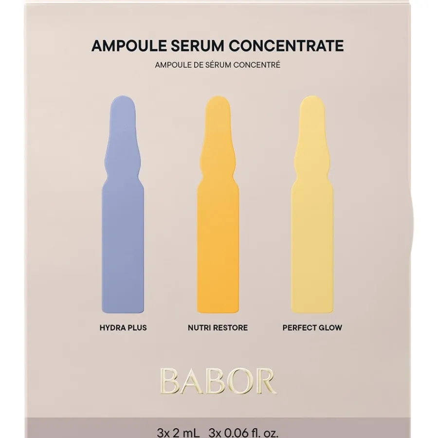 De Ampoule Serumconcentraten set van cosmeticamerk BABOR bevat in totaal zes afzonderlijke ampullen met sterk geconcentreerde huidverzorging. Naast twee ampullen Hydra Plus bevat het doosje ook twee ampullen met elk Serum Perfect Glow en Nutri Restore. De doffe, uitgeputte huid zal bijzonder blij zijn met een grote Hydra Plus-verzorgingsportie. In de formule zorgen Chlorella vulgaris en Lupinus albus met micronutriënten zoals lipiden en aminozuren voor een duurzame regeneratie van je huid. De uitgekiende verzorgingsformule ondersteunt ook de beschermende barrière van de huid, zodat veel gevreesde milieu-invloeden geen kans meer krijgen. Na een grondige reiniging verwent het Nutri Restore serum je huid met hyaluronzuur, sachariden en provitamine B5. De droge huid is perfect gehydrateerd en ziet er weer jonger uit.