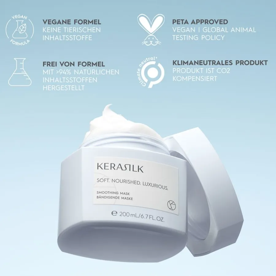 Het Specialists Taming Mask van Kerasilk ontwart het haar, verbetert de doorkambaarheid en brengt pluizig haar onder controle. Met zijn unieke actieve ingrediënten dringt het diep door in de haarstructuur en biedt het intensieve verzorging. Het voedt het haar, maakt het soepel en laat het glanzen. Op deze manier verandert het moeilijk te temmen haar in een zachte, makkelijk handelbare bos haar. Het is veganistisch en vrij van kleurstoffen, siliconen, sulfaten, microplastics en minerale oliën. Masseer het masker in je haar, laat het minstens 5 minuten intrekken en spoel het grondig uit. Geniet van zijdezacht, perfect verzorgd haar!