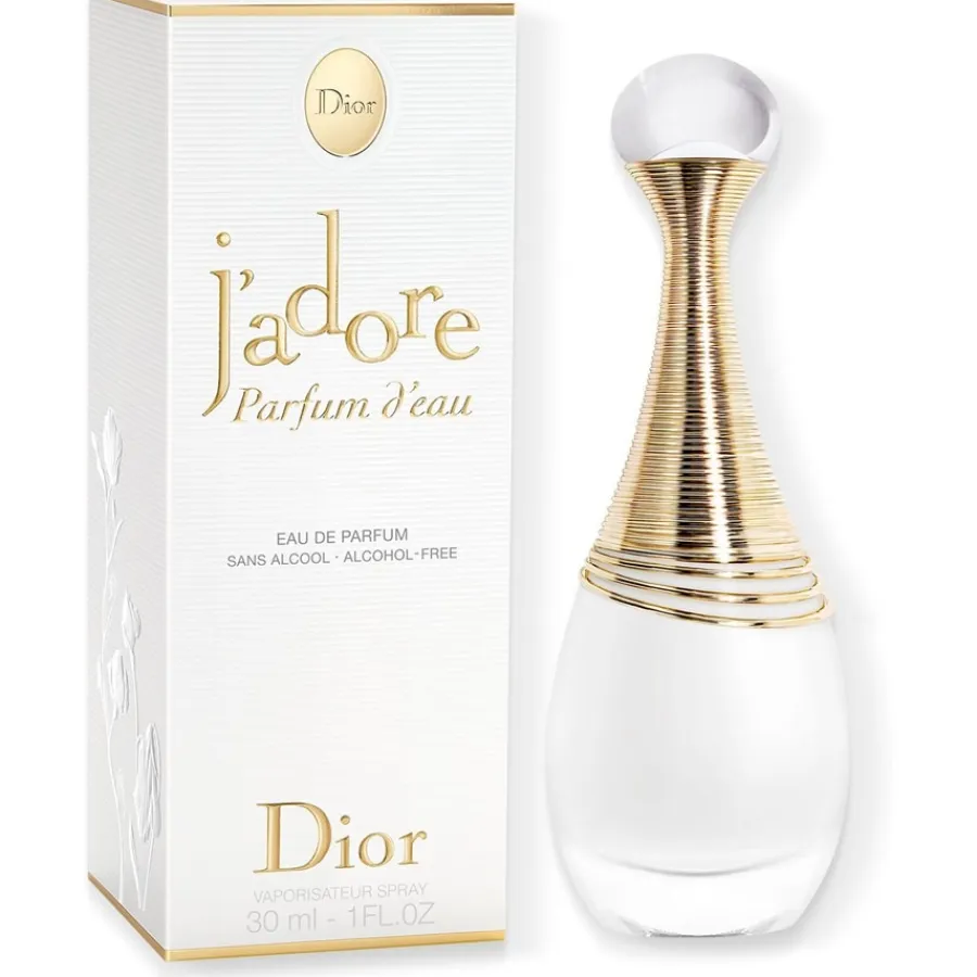 De formule van dit parfum in een mat opalescent wit flesje is de eerste in zijn soort bij Dior. Ook de manier van parfumeren is nieuw: J’adore Parfum d’eau wordt rijkelijk verstoven als een wolk die de huid omhult.