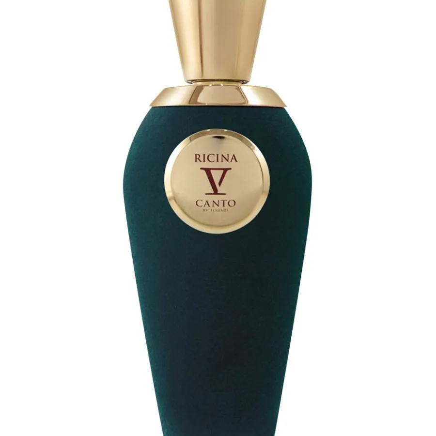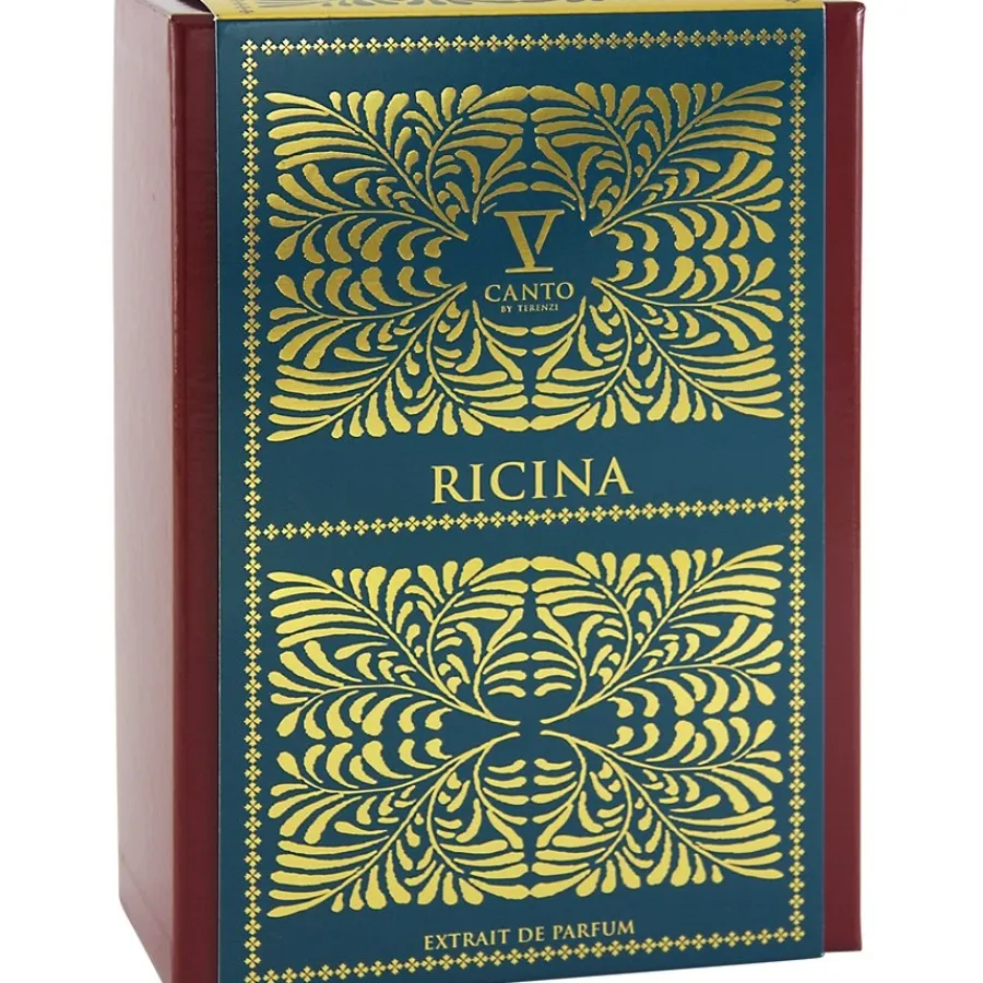 Paolo Terenzi creëert een topnoot van perziken, sinaasappels, pruimen en bergamot voor het Ricina Extrait de Parfum. Oranjebloesem, pioenroos, jasmijn en Siberische iris dragen de bloemige hartnoot. De basis is wat weelderiger en bestaat uit eikenmos, muskus, sandelhout, patchoeli en Cambodjaanse oud. Hoewel de V Canto Green Collection gewijd is aan giftige planten, is het Ricina Extrait de Parfum ook een prachtige geur die het hele jaar door een mooie metgezel is voor ’s avonds, om uit te gaan en ook overdag in je vrije tijd. En omdat V Canto een echt nichelabel is, zijn de geuren niet overal verkrijgbaar en staan ze ver af van de mainstream.
