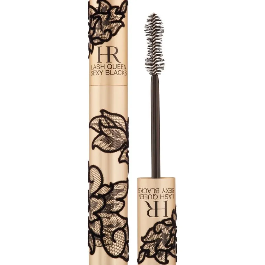 De Lash Queen Mascara Sexy Blacks van Helena Rubinstein geeft de wimpers een intens zwarte kleur en een expressieve blik. De waterproof, crèmige textuur omhult elke wimper en zorgt voor een diepzwarte finish. Het speciaal ontworpen borsteltje zorgt voor een bijzonder precieze applicatie. Dankzij borstelhaartjes van verschillende lengte worden zelfs de fijnste wimpers van de aanzet tot de punt opgevangen, wat kan leiden tot een gedefinieerd resultaat. De formule bevat onder andere jojoba-olie en glycerine. Het is niet alleen de inhoud, maar ook de buitenkant die de mascara zo speciaal maakt: De elegante huls is omhuld met fijn kant, waardoor het een echte blikvanger is.