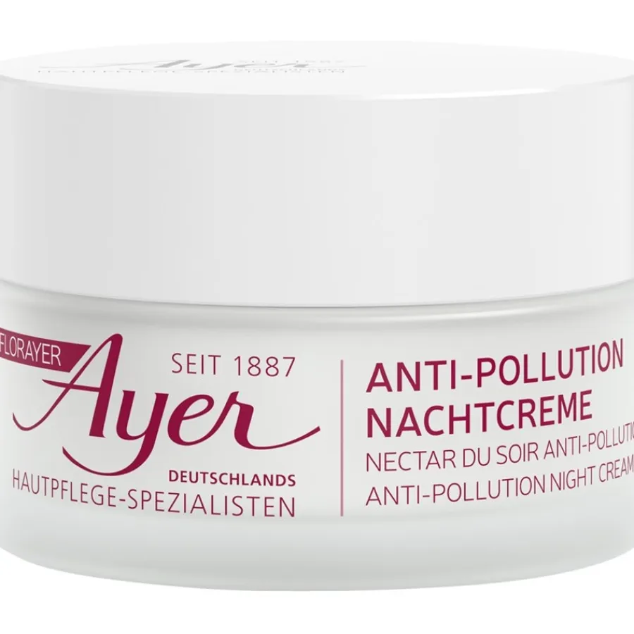 De FlorAyer Anti-Pollution Nachtcrème van Ayer biedt de huid effectieve bescherming tegen stedelijke milieu-invloeden en stabiliseert de natuurlijke balans van de huid. De crème hydrateert de huid en stimuleert de collageen- en elastinesynthese. Met zijn heerlijk aromatische, bloemige geur en smeltende textuur die snel wordt opgenomen, zorgt hij voor een luxueus huidverzorgingsritueel en laat hij de huid fris en gerevitaliseerd aanvoelen. De crème is vrij van parabenen, synthetische kleurstoffen en allergene geurstoffen. Breng de nachtcrème met zacht strijkende bewegingen aan op je gezicht voordat je naar bed gaat. Geniet van een gladde, vollere en stevige huid!