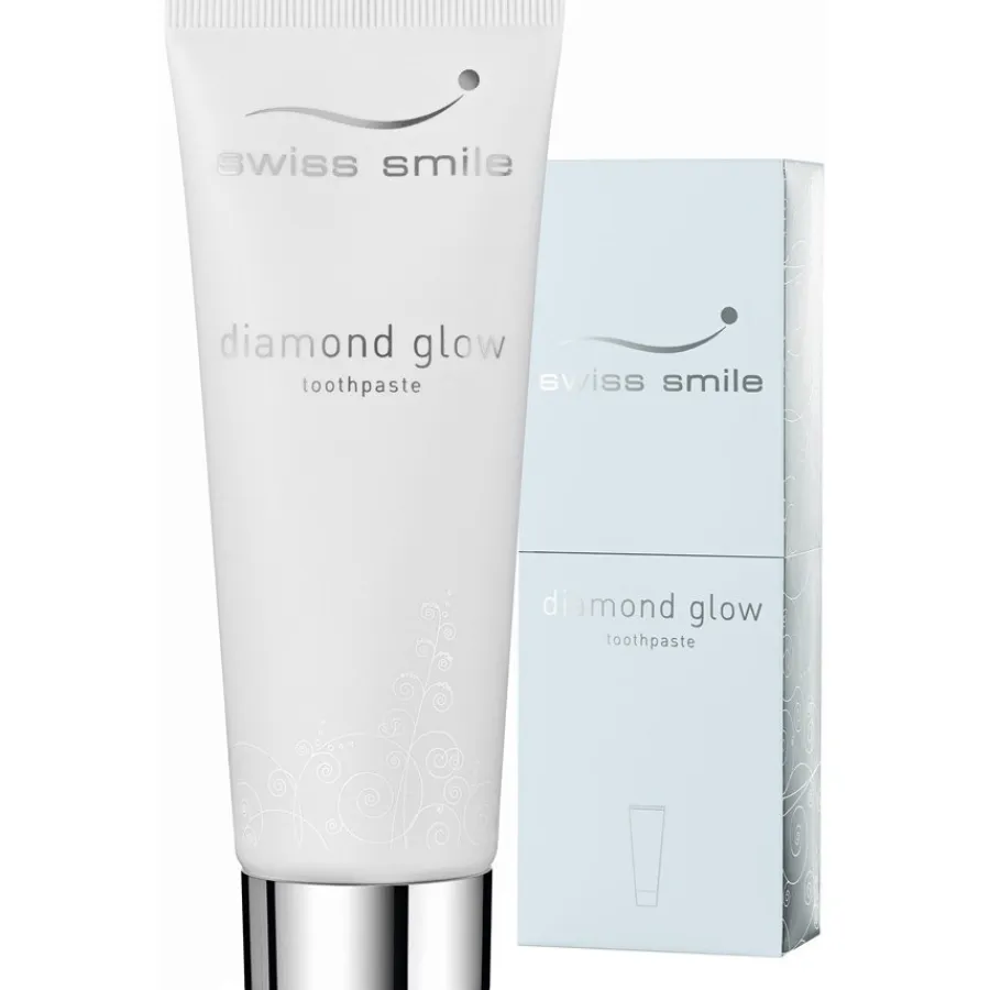 Conventionele whitening tandpasta tast het tandglazuur aan. De Diamond Glow tandpasta van Swiss Smile daarentegen poetst je tanden op een extreem zachte manier. De curcumine in dit hoogwaardige tandverzorgingsproduct voorkomt ontstekingen en zorgt er ook voor dat tandplak zich niet zo snel kan ophopen. Aloë vera verzorgt het tandvlees. Laat je tanden stralen in hun mooiste wit – dit tandverzorgingsproduct helpt je daarbij.