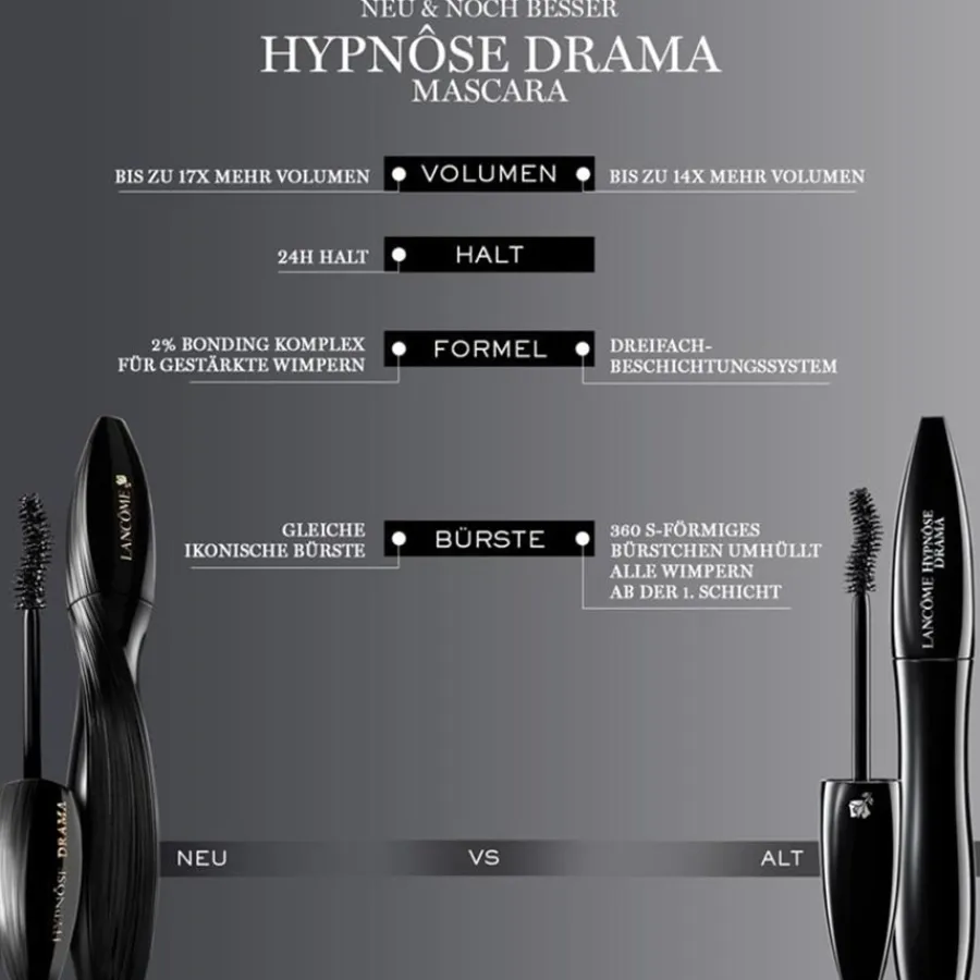Naast het volumeborsteltje heeft de Hypnôse Drama Volume Mascara van Lancôme ook een voedende formule die is getest onder oftalmologisch toezicht en geschikt is voor zowel gevoelige ogen als contactlensdragers. Deze verzorgende formule bevat een twee-procent bindingscomplex dat de wimpers omhult, waardoor ze sterker aanvoelen. De meegeleverde onyxpigmenten zorgen voor een diepzwarte intensiteit voor nog meer drama.