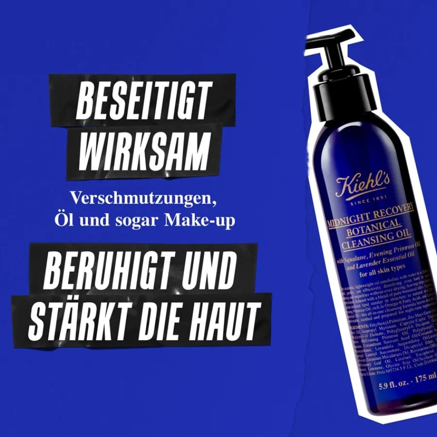 De Midnight Recovery Botanical Cleansing Oil van Kiehl’s is een lichtgewicht reinigingsolie die is ontwikkeld als eerste stap in je huidverzorgingsroutine ’s avonds. Samengesteld met een mix van botanische oliën, waaronder teunisbloem- en lavendelolie, verwijdert het effectief make-up, inclusief waterproof varianten, evenals vuil en onzuiverheden van het huidoppervlak. Bij gebruik op een droge huid verspreidt het een subtiele, aangename geur. Zodra er water wordt toegevoegd, emulgeert de olie in een zachte reinigingsmelk die gemakkelijk af te spoelen is en de huid schoon en soepel laat aanvoelen zonder dat deze droog aanvoelt. De formule is geschikt voor alle huidtypes en kan helpen de natuurlijke barrière van de huid in stand te houden.