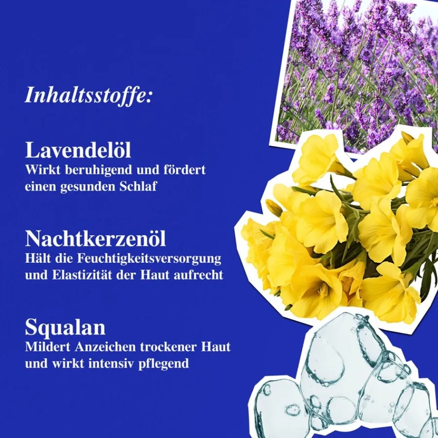 - Geformuleerd met een mengsel van botanische oliën zoals teunisbloem- en lavendelolie.</li