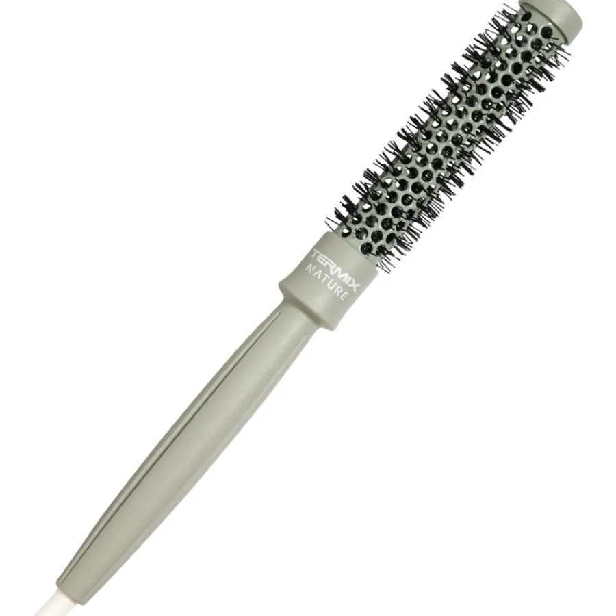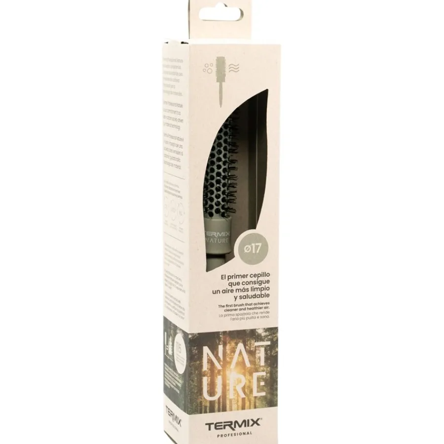 De ronde borstels van TERMIX met een professionele natuurborstel worden gekenmerkt door verschillende belangrijke eigenschappen.De borstels zijn gemaakt van een innovatief natuurlijk materiaal met katalytische eigenschappen. De hittebestendige, geïoniseerde borstelharen ondersteunen speciale chemische omzettingsprocessen die verontreinigende stoffen in de omgevingslucht reduceren. De aluminium cilinder is keramisch gecoat, wat zorgt voor een gelijkmatige warmteverdeling over de hele lengte van de borstel. Vochtig haar droogt daardoor sneller en kan sneller worden behandeld.Het handvat van de borstel is gemaakt van polypropyleen met antikleeflaag. Haren kunnen niet aan het handvat blijven plakken. Deze borstels zijn verkrijgbaar in verschillende diameters (17 tot 43 mm).