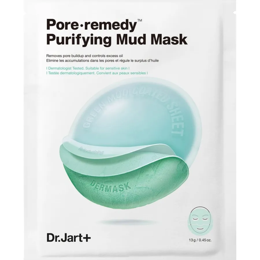 Het Dr Jart+ Pore-remedy Purifying Mud Mask uit de Dermask lijn maakt indruk met zijn combinatie van groene klei en zeezout. De huid wordt diep gereinigd en krijgt nieuwe energie. De klei helpt onder andere bij het verwijderen van dode huidcellen en verwijdert ook overtollig tal van de huid. Het zeezout werkt als een fijne scrub en helpt de huid er gladder en fijner uit te laten zien. Het is gemakkelijk te gebruiken en het effect op de huid is direct zichtbaar. Voor een merkbaar gezondere gezichtshuid.