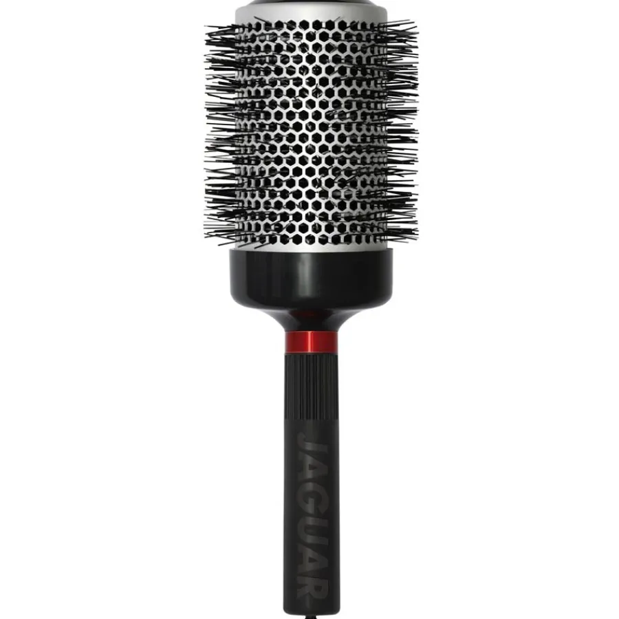 De Jaguar T 390 ronde borstel is gemaakt van een materiaal dat verrijkt is met natuurlijke stoffen. Deze natuurlijke stoffen brengen ionen over op het haar tijdens het borstelen. De ionen breken de waterdruppels af in microdruppels, waardoor het water sneller door het haar wordt opgenomen en je haar sneller droogt. De ionen sluiten ook de schubbenlaag en zorgen voor gladder, zachter haar. De gladdere haarbasis zorgt er op zijn beurt voor dat je haar het licht beter reflecteert en er niet alleen perfect verzorgd uitziet, maar ook helderder en gezonder is. Daarnaast wordt het haar gehydrateerd tijdens het borstelen en worden statische en weerbarstige haren op betrouwbare wijze voorkomen.