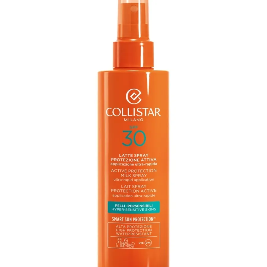 De Sun Protection van Collistar wordt gekenmerkt door zijn formule. Deze is speciaal ontwikkeld voor de gevoelige huid. Een extract van hypergefermenteerde opuntia hydrateert de huid. Tegelijkertijd heeft het verzachtende en antioxiderende eigenschappen. Zelfs als je huid al is aangetast door de felle zon, is het nog niet te laat voor Sun Protection. Het bevat een speciaal hopextract. De polyfenolen hiervan hebben een mild antibacterieel effect. Hierdoor voelt je huid snel weer gezonder aan. Schud het zonverzorgingsproduct voordat je het aanbrengt. Active Protection Milk Spray SPF 30 is geschikt voor alle huidtypes en zelfs voor kinderen jonger dan drie jaar. Sun Protection moet opnieuw worden aangebracht na het baden, zweten of afdrogen.