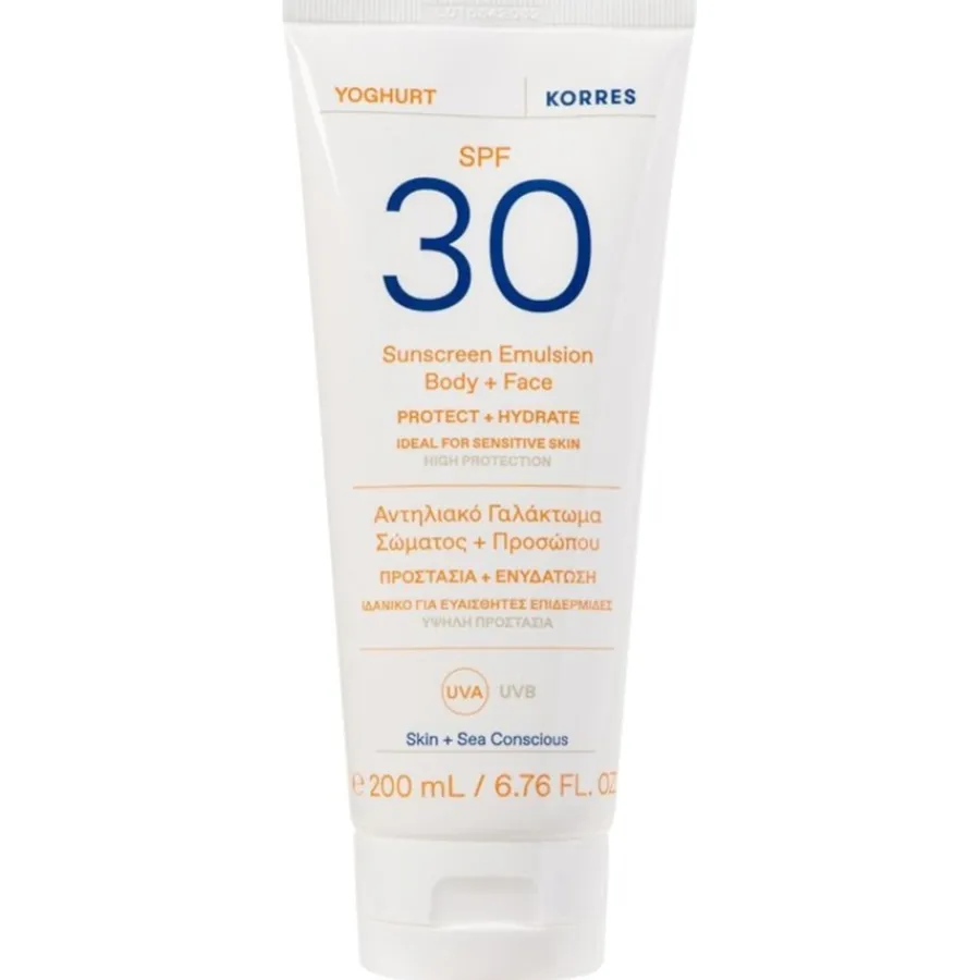 Zonbescherming en zonverzorging met echte eetbare yoghurt – de Yoghurt Zonbeschermende Emulsie voor Lichaam en Gezicht SPF30 van Korres