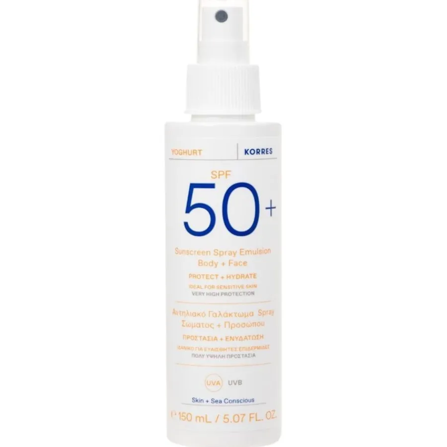 Yoghurt zonnespray emulsie voor gezicht en lichaam SPF50+ – zeer effectieve zonbescherming van KORRES