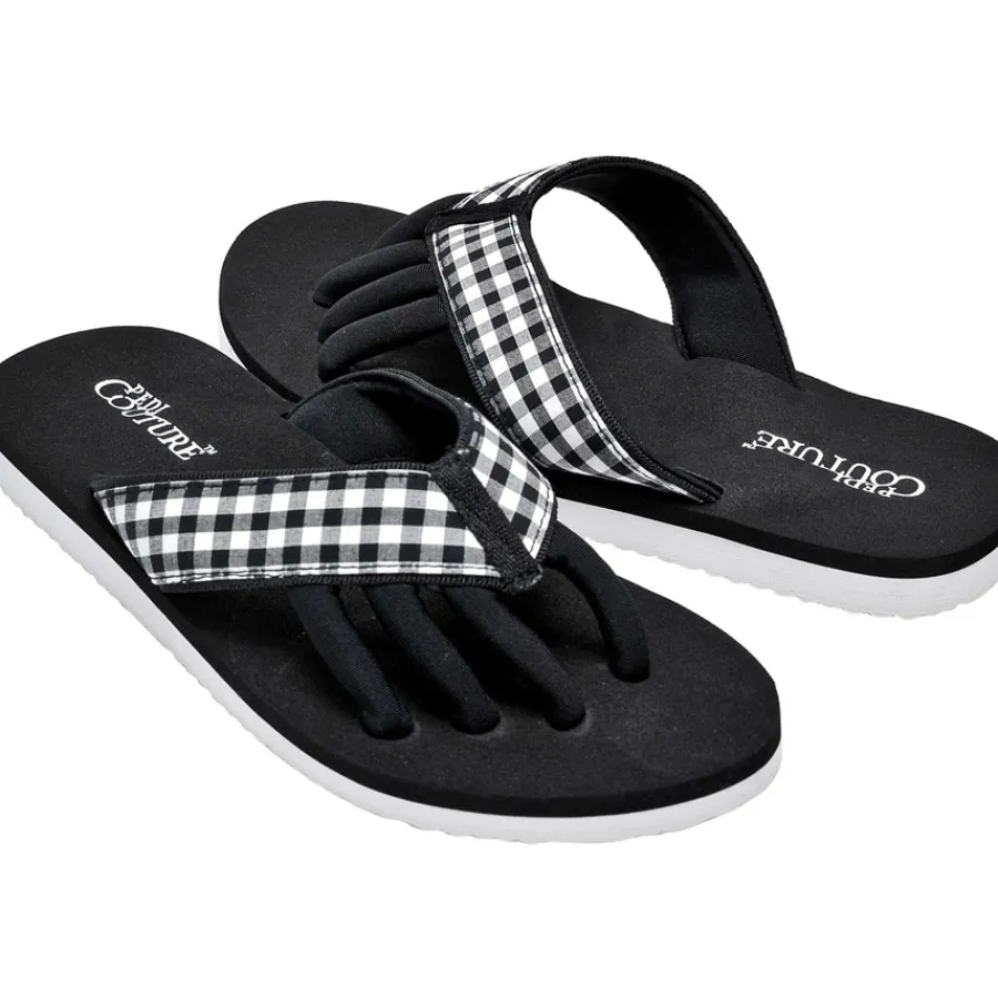 Dankzij het gepatenteerde ontwerp maakt de Gingham Print pedicuresandaal van Pedi Couture een schone en comfortabele pedicure mogelijk. Vooral mensen met pijngevoelige voeten of speciale voetproblemen zullen een aanzienlijke verlichting voelen dankzij de praktische scheiding van de tenen. De sandaal ziet er geweldig uit met zijn modieuze zwart-wit geblokte ruitjesprint. Hij beperkt de bloedcirculatie naar de tenen niet en heeft een pijnstillend effect dankzij de uitgelijnde teenpositie. Perfect voor nagelverzorging thuis. Ervaar een comfortabele en aangename pedicure met de sandalen van Pedi Couture!
