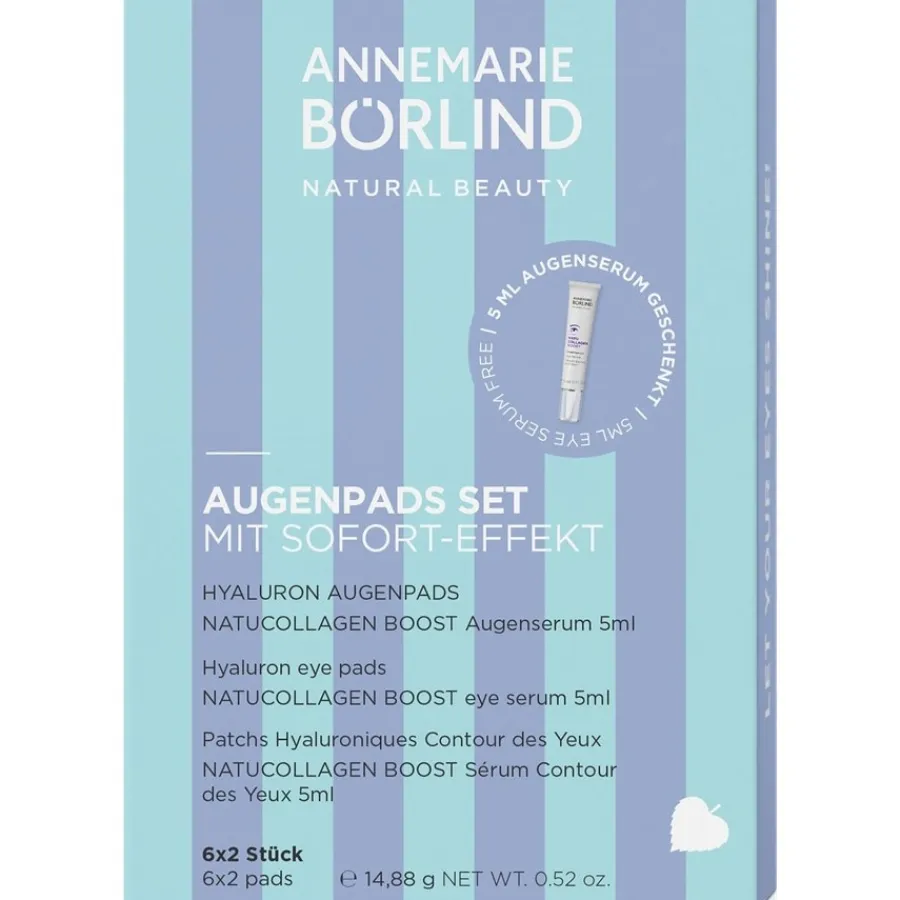 De praktische oogpadset uit de AUGE & LIPPE lijn van cosmeticalabel ANNEMARIE BÖRLIND bevat een natuurlijk collageen oogserum en in totaal zes verpakkingen met elk twee oogpads. De pads zijn ideaal als SOS-verzorging na een avondje dansen. Naast botanisch hyaluronzuur bevat de formule van de zeer effectieve pads ook konjacwortel. Terwijl het hyaluronzuur het tere gebied onder de ogen van veel vocht voorziet en tekenen van vermoeidheid minimaliseert, verminderen de actieve ingrediënten in de konjacwortel kleine rimpels. Binnen korte tijd zien de ogen er weer wakker en fris uit. De veganistische huidverzorging voor de ogen is vrij van minerale oliederivaten, siliconen en genetisch gemodificeerde planten. Zelfs oogartsen en dermatologen hebben de goede verdraagbaarheid getest.