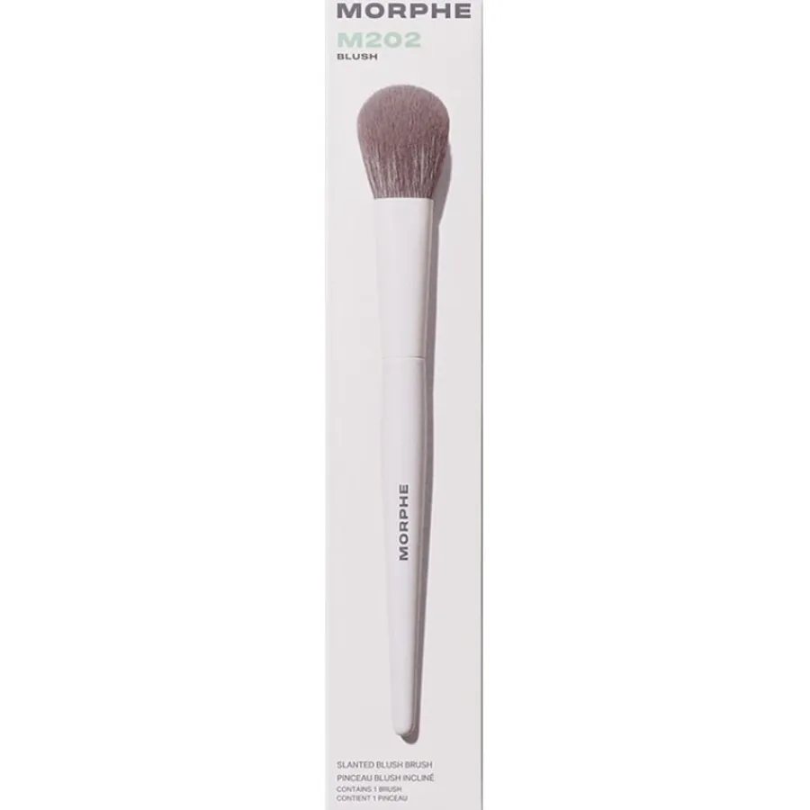 De M202 Slanted Blush Brush van Morphe maakt deel uit van een set hoogwaardige gezichtskwasten waarmee je blush en andere make-up nauwkeurig kunt aanbrengen. In deze versie helpt de gezichtskwast met zijn ronde vorm bij het netjes en gelijkmatig aanbrengen van blush langs de jukbeenderen.