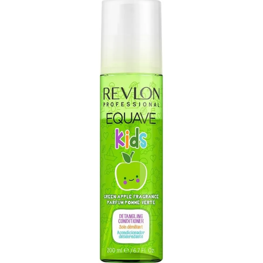 Je brengt de Equave Kids Detangling Conditioner aan door het na het wassen op handdoekdroog haar te sprayen. Het cosmetische product van Revlon Professional hoeft niet te worden uitgespoeld. Het kan ook op droog haar worden gebruikt. De conditioner is hypoallergeen en bevat geen parabenen, kleurstoffen of sulfaten. De UVA/UVB-filter beschermt het haar tegen schadelijke zonnestralen.