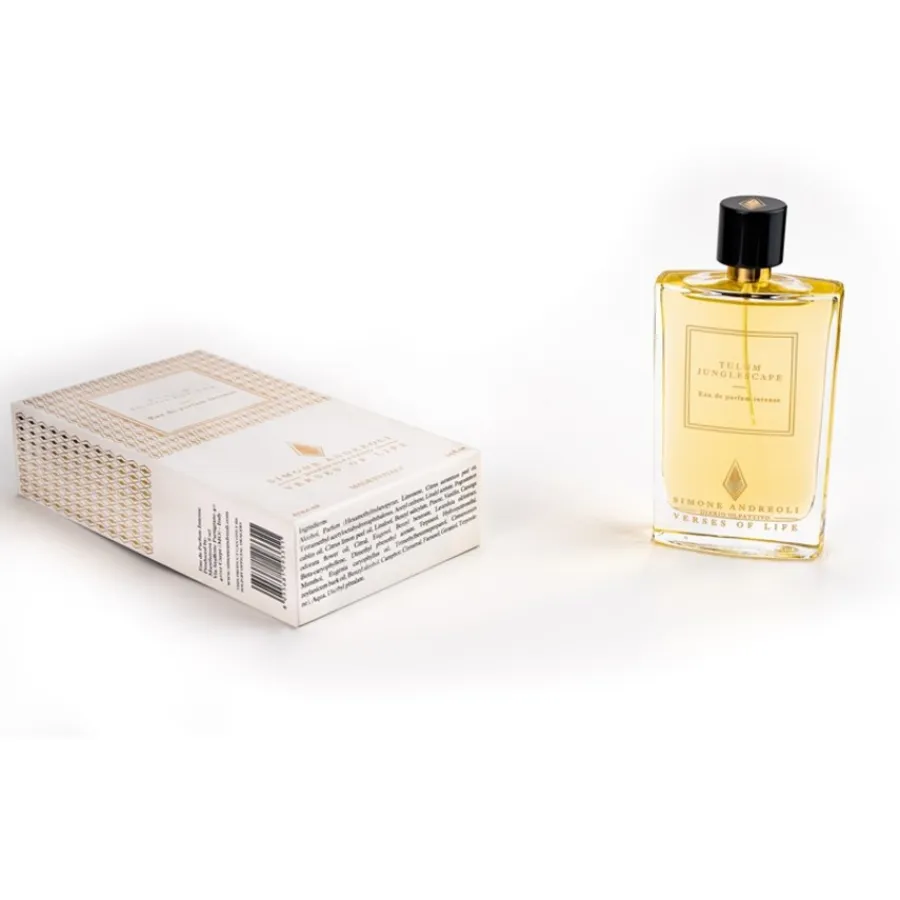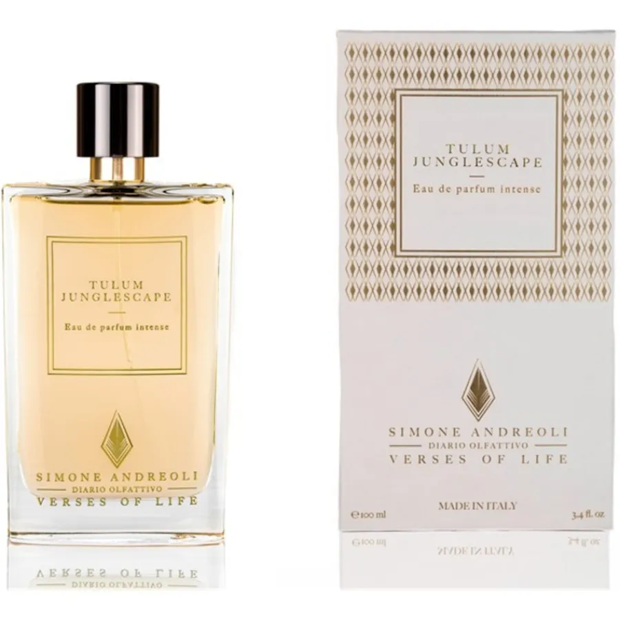 Simone Andreoli Verses of Life Eau de Parfum Intense Spray vangt de essentie van de weelderige landschappen van Tulum. Een sprankelende topnoot van verfrissende limoen, groene thee, koele munt en een vleugje zeezout vormt de opmaat. Het doet denken aan de frisse zeebries die de tropische vegetatie ontmoet.