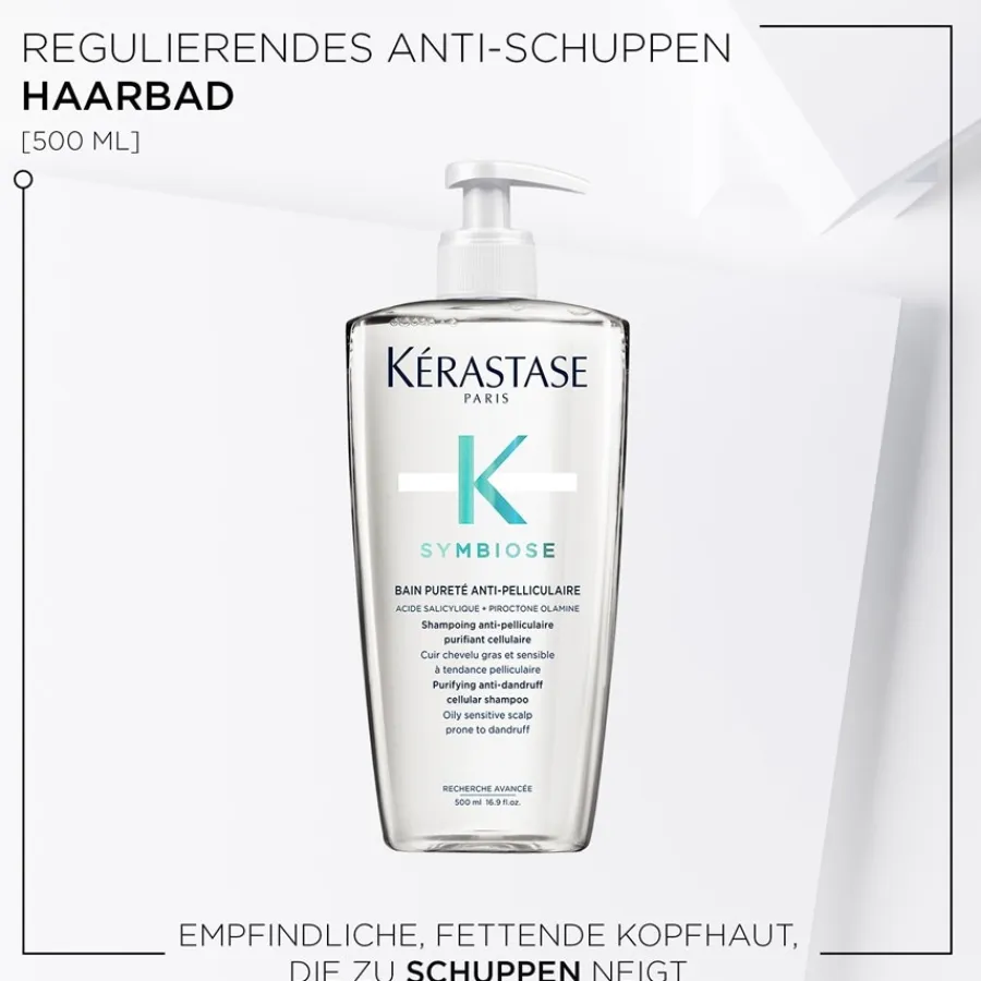 Symbiose Bain Pureté Anti-Pelliculaire van Kérastase verwent het haar en de hoofdhuid met een milde reiniging en regelt de snelle regeneratie van de hoofdhuid. Het verwijdert roos en voorkomt de vorming van nieuwe roos. De hoofdhuid wordt gekalmeerd en het haar blijft zacht en soepel. Het haarbad is geschikt voor alle hoofdhuidtypes, vooral voor de droge en gevoelige hoofdhuid. Het is vrij van sulfaten. Breng het haarbad aan op het haar, laat het schuimen, masseer het zorgvuldig in en spoel het grondig uit. Geniet van glad, gezond haar en een verfriste hoofdhuid!