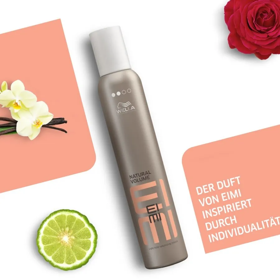 De EIMI Natural Volume Styling Mousse wordt speciaal aanbevolen voor fijn en slap haar. Deze stylingmousse van Wella is ideaal als je je haar nieuwe veerkracht wilt geven en volumineuze kapsels wilt creëren. Breng de mousse na de dagelijkse shampoobeurt gelijkmatig aan op vochtig haar van aanzet tot punt. Altijd goed schudden voor gebruik. Föhn het haar vervolgens en het resultaat is flexibel volume met een natuurlijke finish.