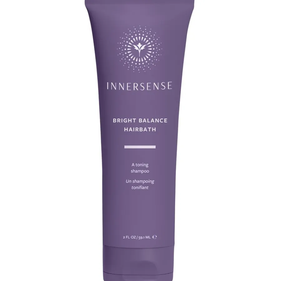 Het geheim van de paarsgekleurde Innersense Bright Balance Hairbath Shampoo zijn de paarse pigmenten. Ze neutraliseren de gele tint. Het haar schijnt frisser, glanzender en gezonder. Vooral blonde of grijze tinten worden gekenmerkt door een langdurige koelte na behandeling met Bright Balance Hairbath Shampoo. Naast het visuele effect van de lichte kleuring, krijg je ook een grondige, zachte verzorging. De shampoo is verkrijgbaar in een fles met dispenser (646 ml) of in een reisvriendelijke tube van 59 ml.Innersense gebruikt natuurlijke ingrediënten zoals appel- en rijstextracten. Deze bevorderen de opname van vocht in het haar. Het wordt verzegeld door monoï-olie. Dit beschermt tegen weersinvloeden en zorgt ervoor dat de kleur langer blijft glanzen. De shampoo is in eerste instantie ontwikkeld voor grijs en blond haar. Hij is geschikt voor alle haartypes, ongeacht de textuur. Giet een kleine hoeveelheid in je handen en laat het schuimen. Masseer de shampoo nu in het haar en op de hoofdhuid voordat je het grondig uitspoelt. Wat overblijft is een lichte, aangename geur van appel en jasmijn.
